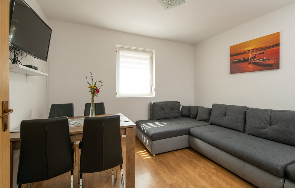 Dans la cuisine, vous pouvez préparer de délicieux repas où vous pouvez également manger, ou que diriez-vous d'un délicieux dîner sur la terrasse avec un magnifique coucher de soleil ? Vous trouverez également de bons magasins et restaurants en ville. Faites-vous plaisir en dégustant des plats classiques et des spécialités locales. Avec et dans cette maison, vous et votre famille découvrirez la Croatie. Dans le jardin, il y a une piscine où vous pouvez aussi vous baigner.