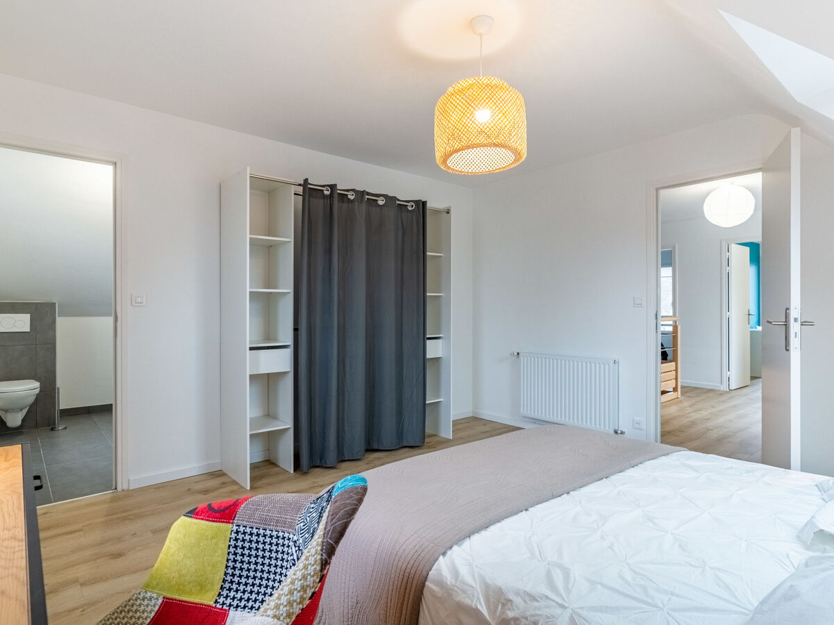 1 chambre avec 1 grand-lit (160 cm, longueur 200 cm), douche.