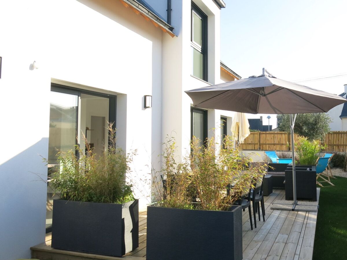 A usage privé: terrain 320 m2 (clôturé) avec pelouse et plantes.