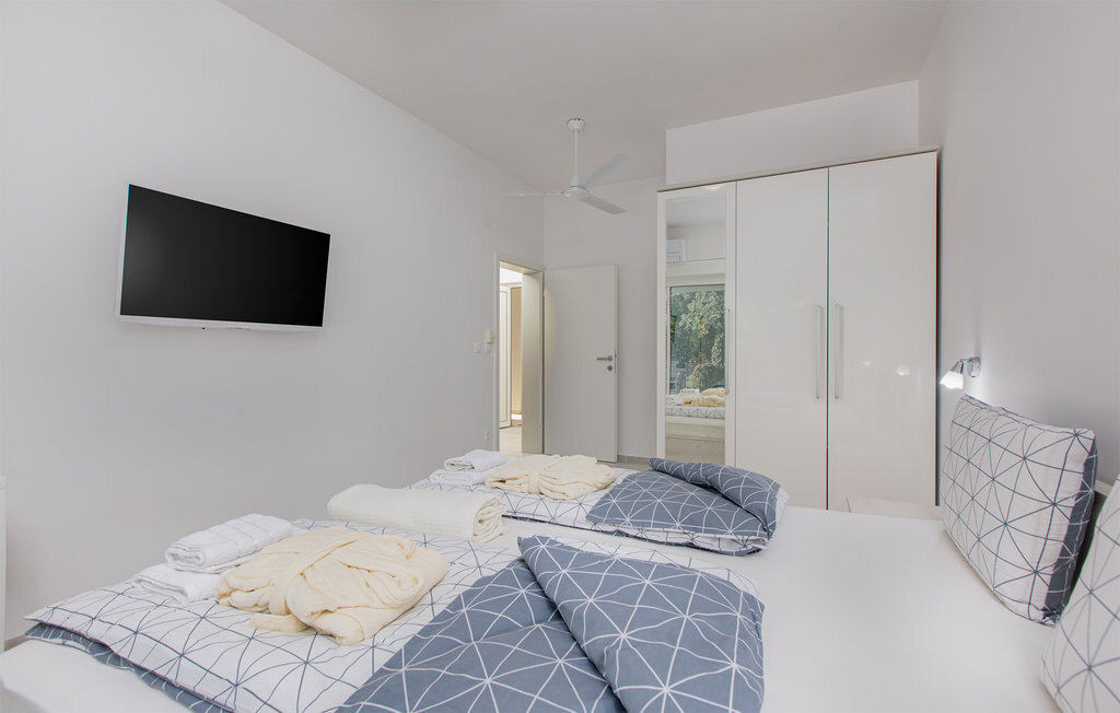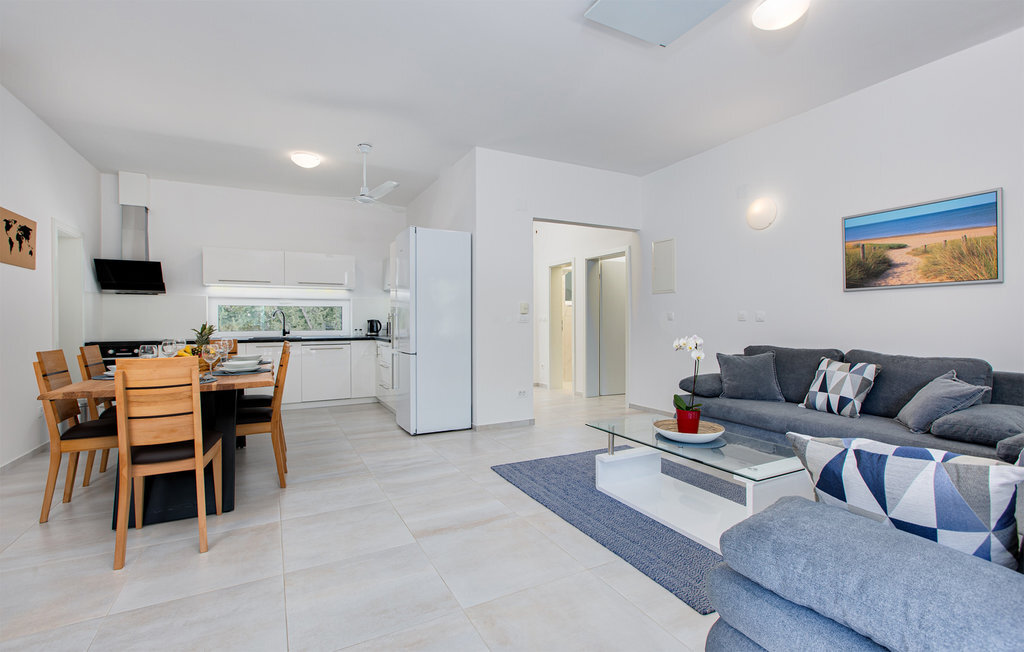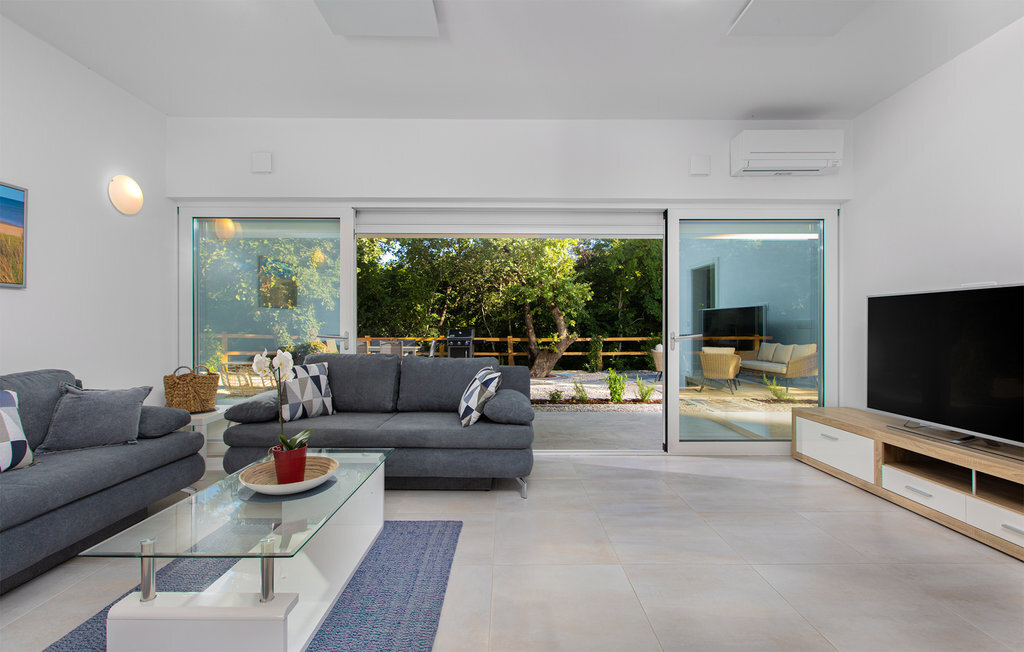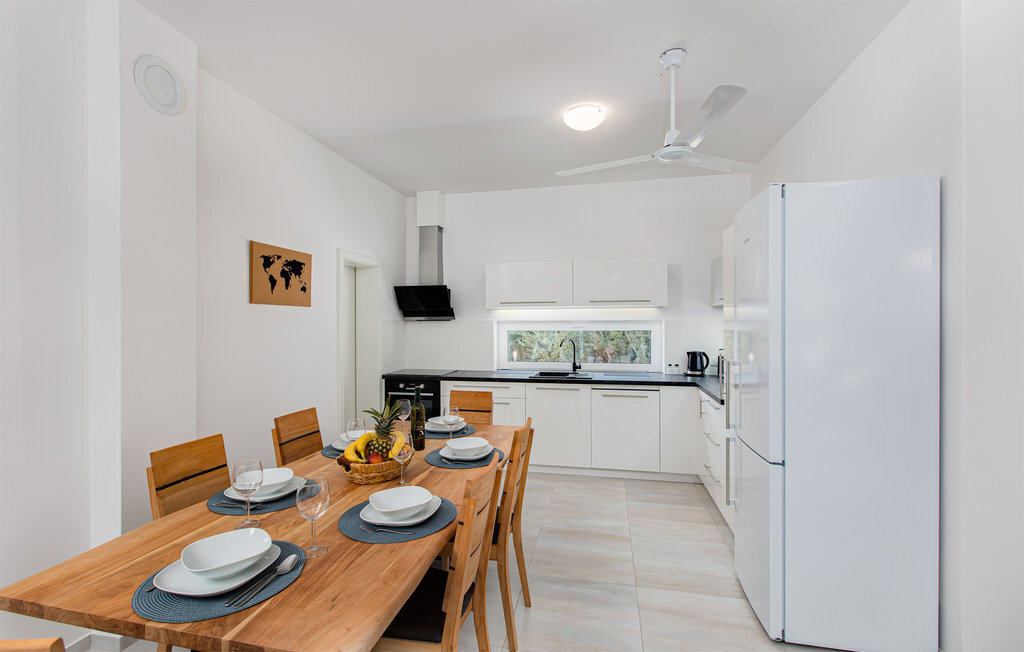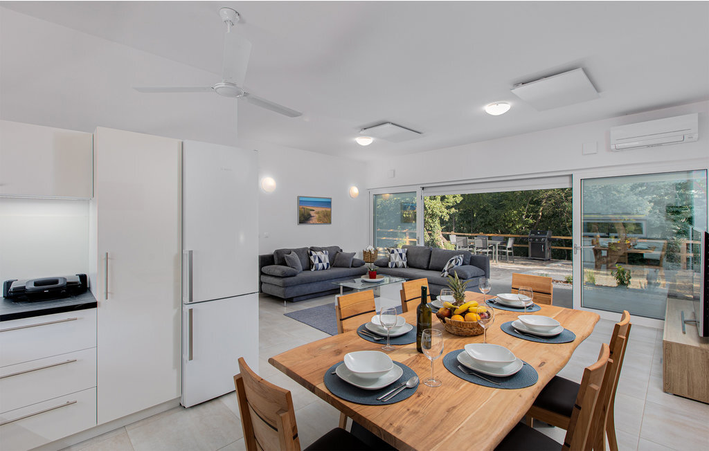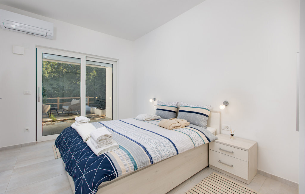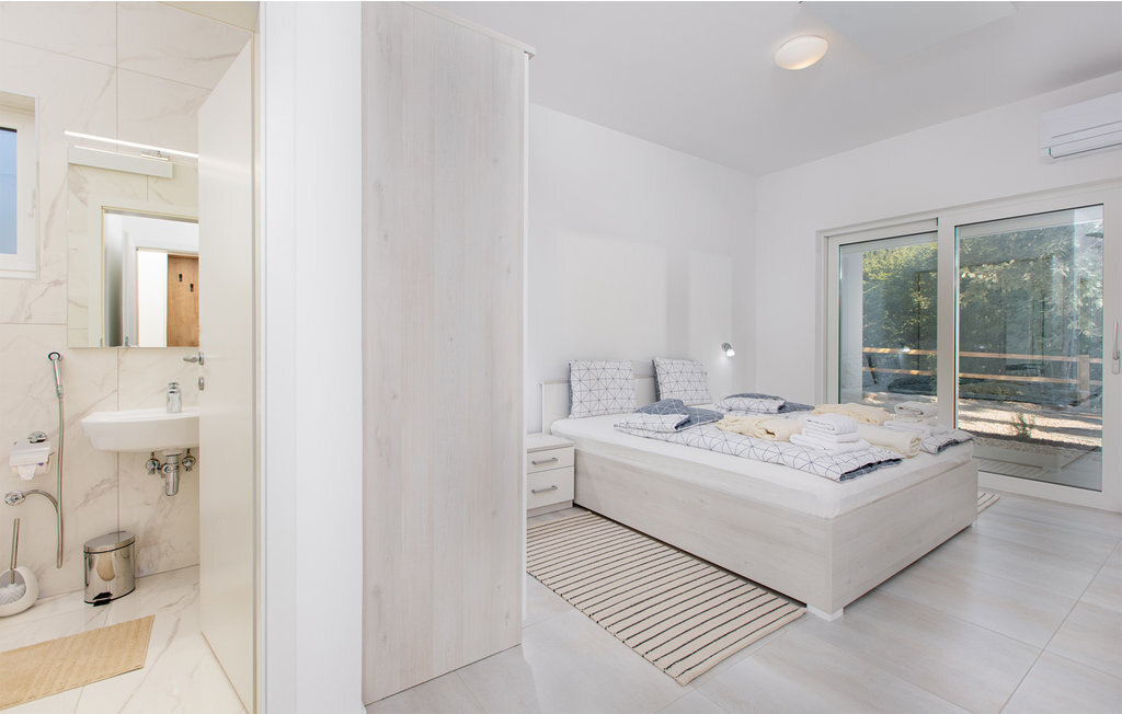 L'intérieur est beau et spacieux, le salon et la cuisine sont entièrement équipés avec tout ce dont vous avez besoin. Les chambres disposent de leur propre salle de bain, de sorte que tous les hôtes peuvent profiter de leur propre espace confortable. La maison est située dans un endroit très calme au milieu d'une belle nature, mais il y a tout de même des magasins, des restaurants ainsi que de belles plages à proximité.