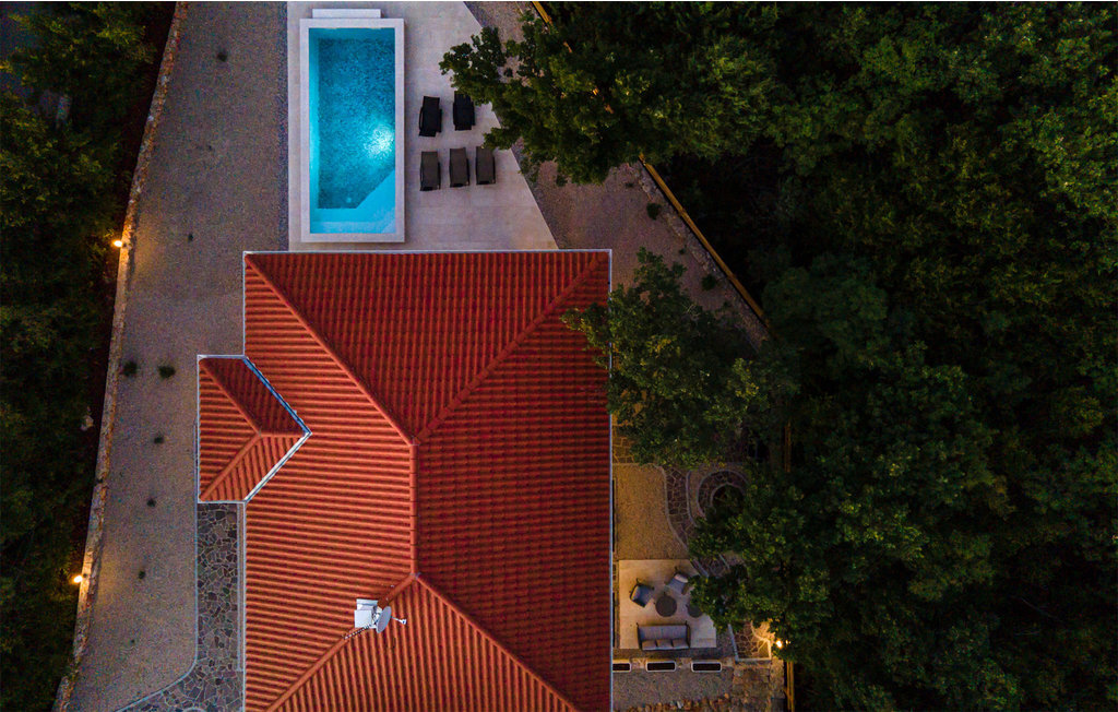 La propriété est de construction récente, une maison moderne d'un étage sur un vaste jardin avec piscine extérieure et plusieurs terrasses, dont une avec une piscine rafraîchissante. Le jardin et le parking sont clôturés.