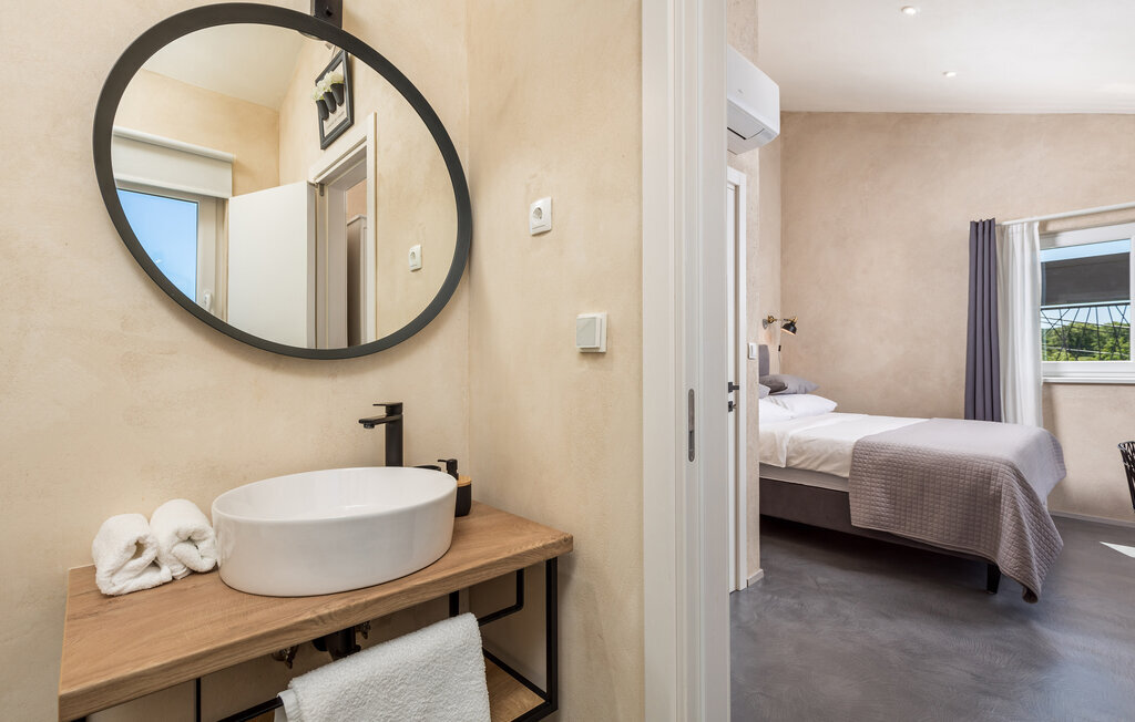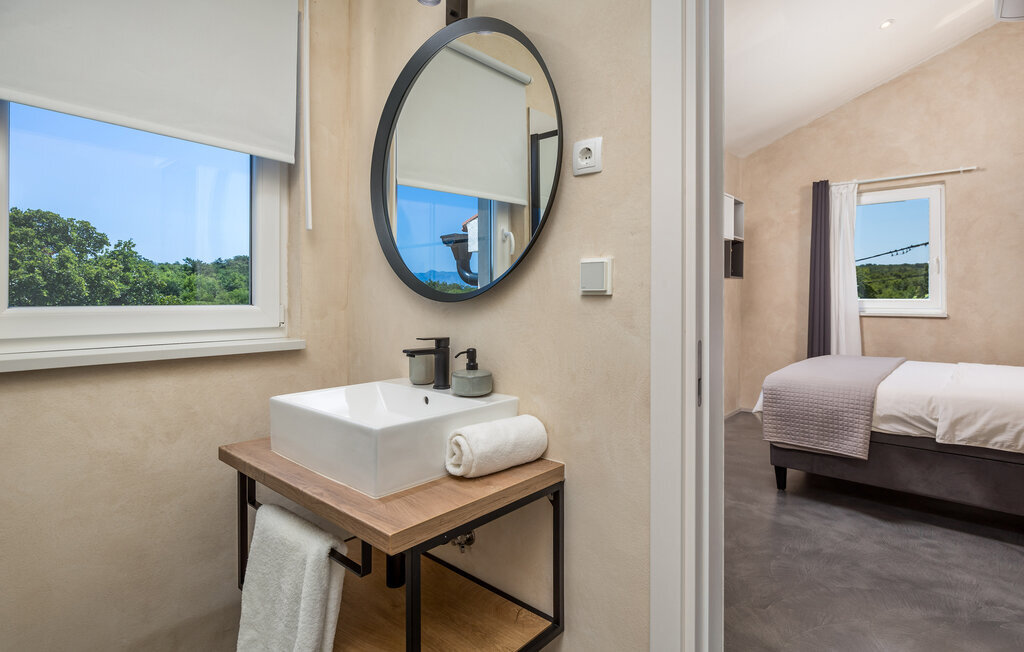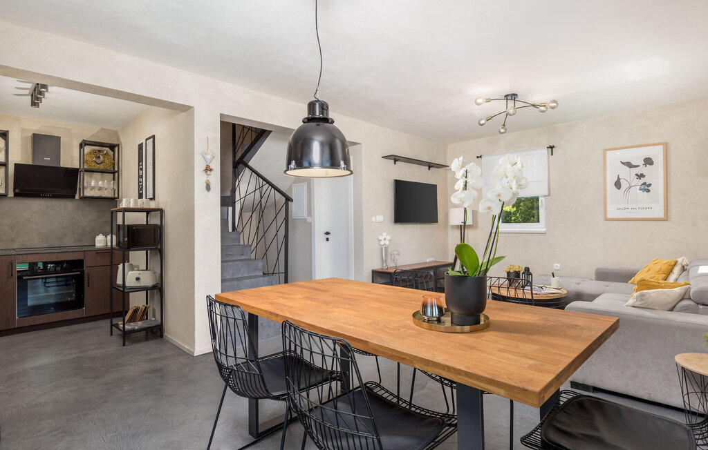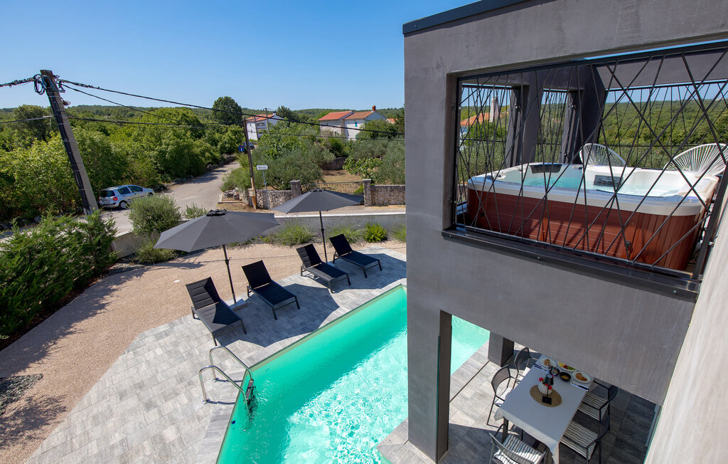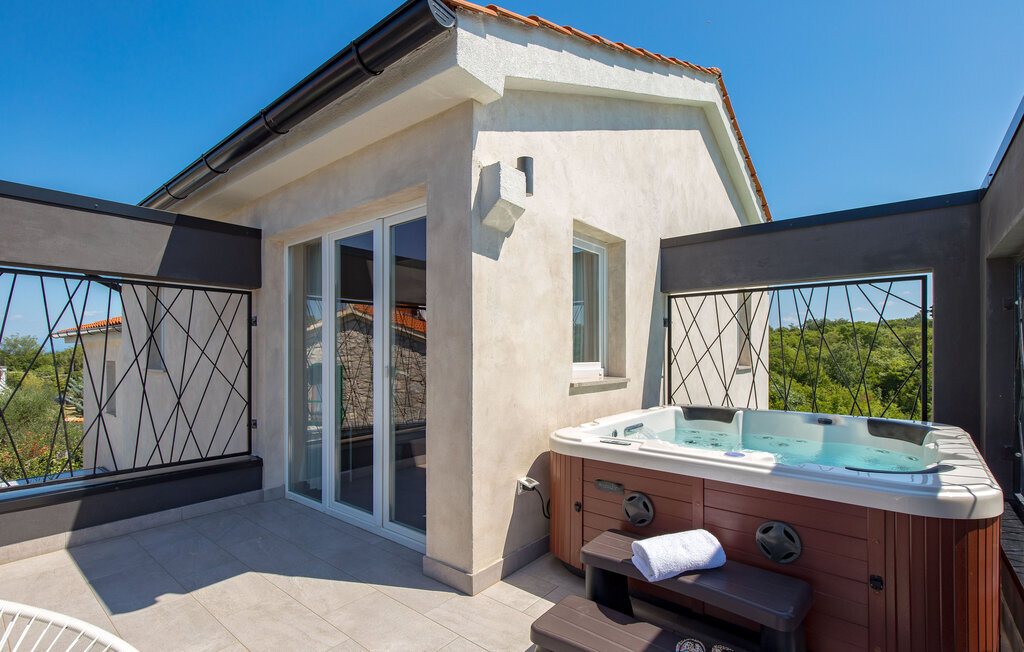 À l'étage supérieur, vous trouverez également des chambres à coucher et une terrasse avec jacuzzi extérieur pour 5 personnes, avec une vue fantastique sur la végétation environnante, où vous pourrez trouver des idées pour vos journées de vacances. Explorez l'île populaire et ses nombreuses manifestations de divertissement, sportives et culturelles. Goûtez également à l'excellente offre gastronomique et vinicole. Les plages les plus proches se trouvent à Soline, iii ou Malinska.