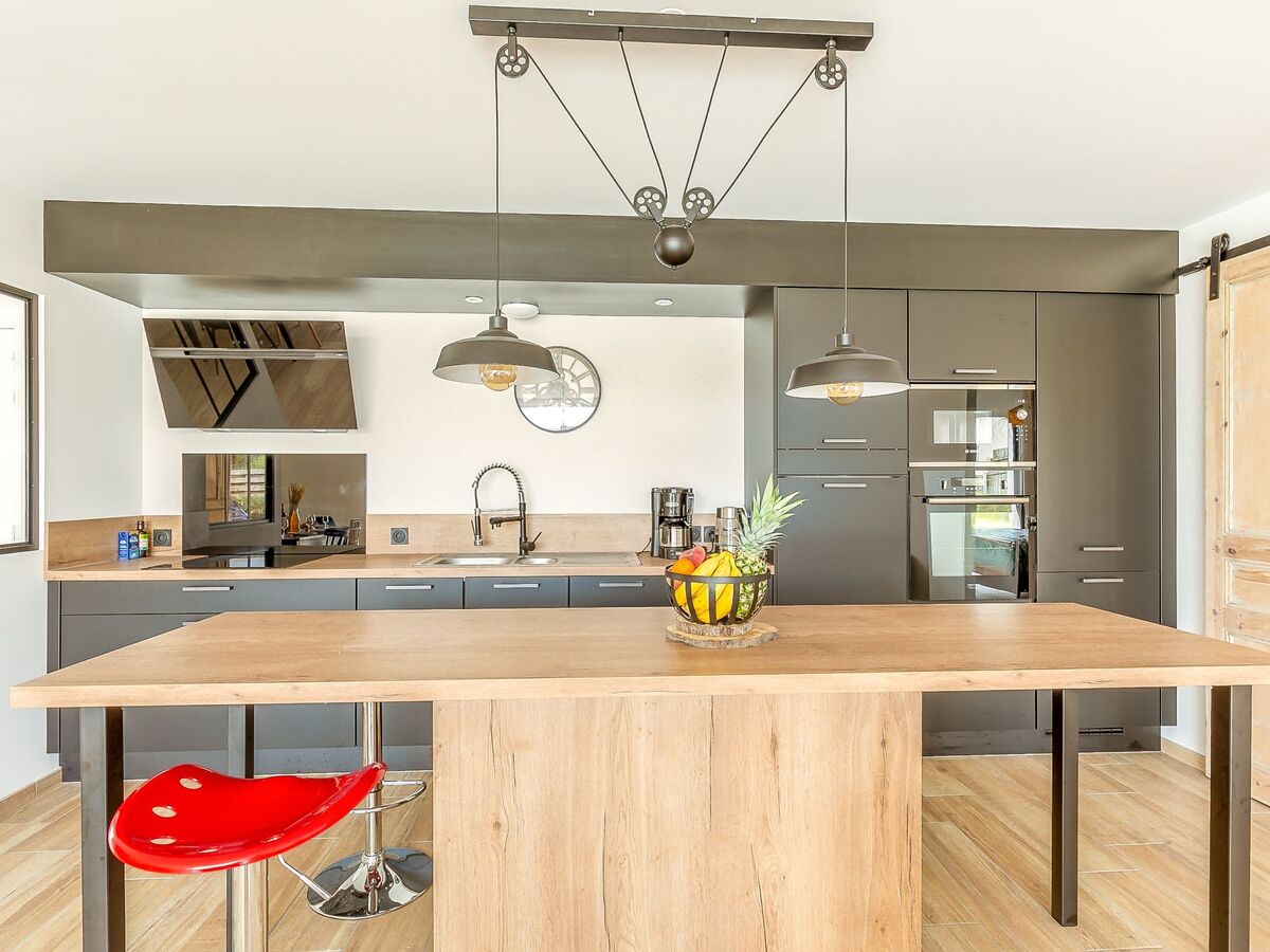 Grande cuisine ouverte (four, lave-vaisselle, 3 plaques à induction, grille-pain, bouilloire électrique, congélateur, cafetière électrique).