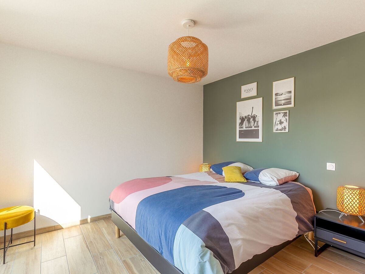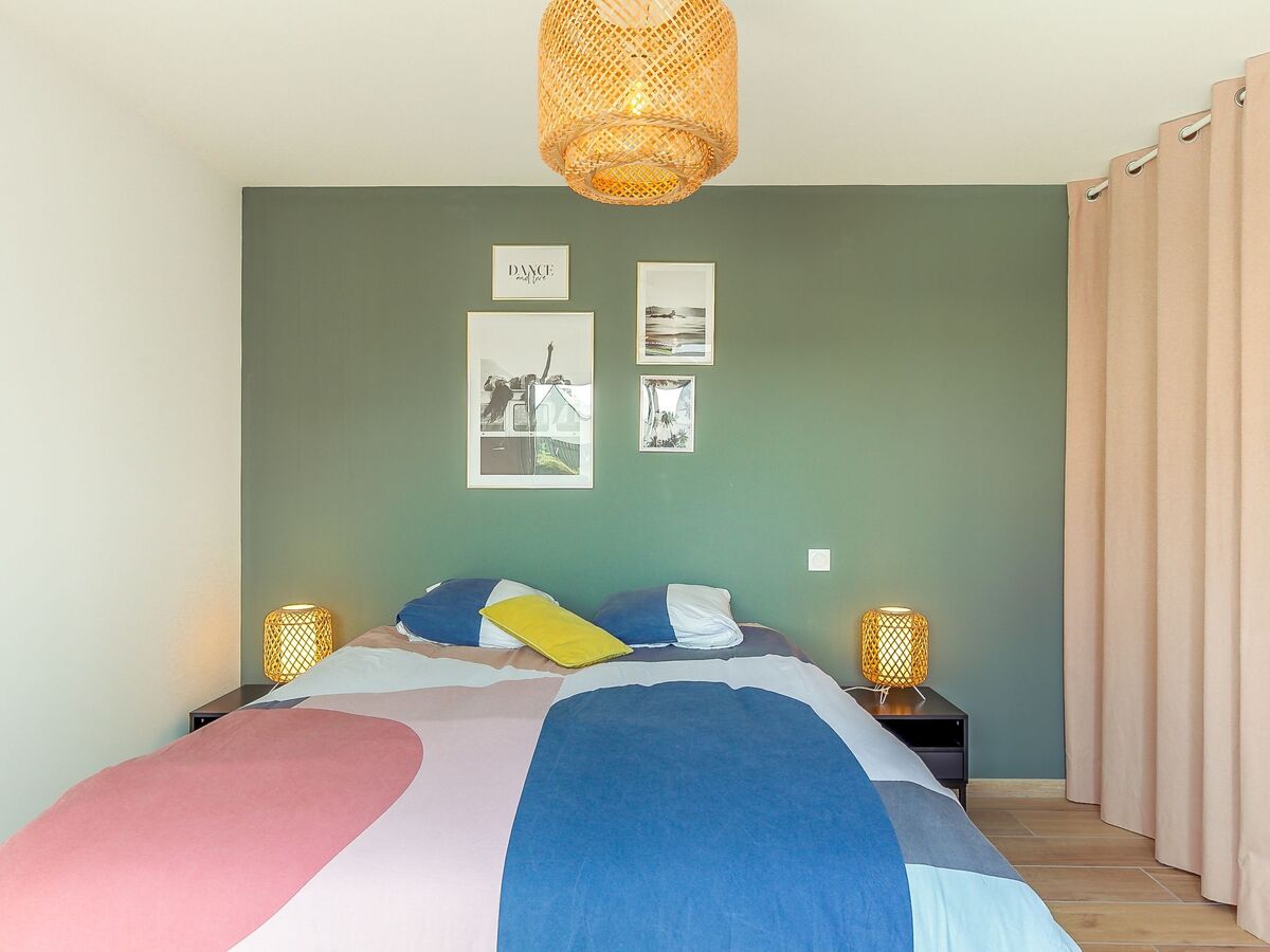 1 chambre avec 1 grand-lit (160 cm, longueur 200 cm), volet roulant électrique.