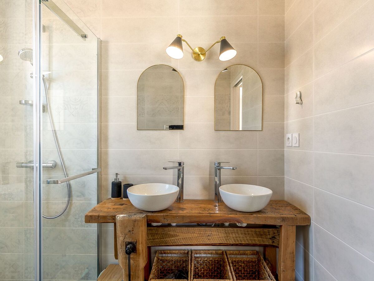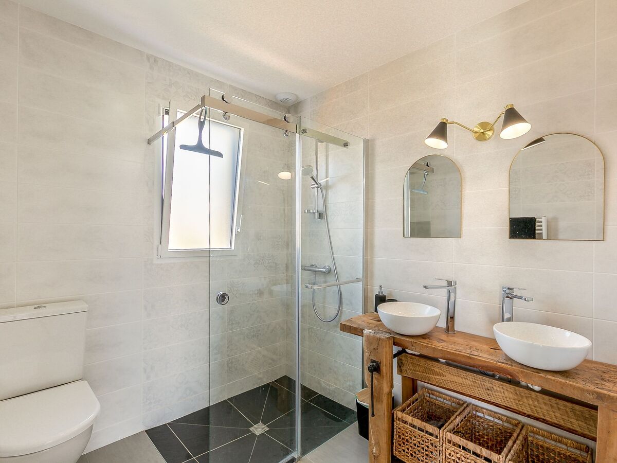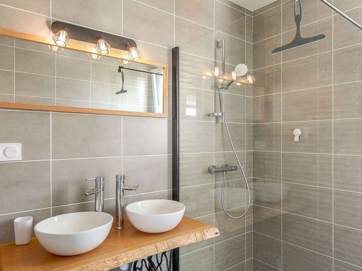 1 chambre avec 2 lits (80 cm, longueur 200 cm), volet roulant électrique avec WC séparés, douche et double vasque.
