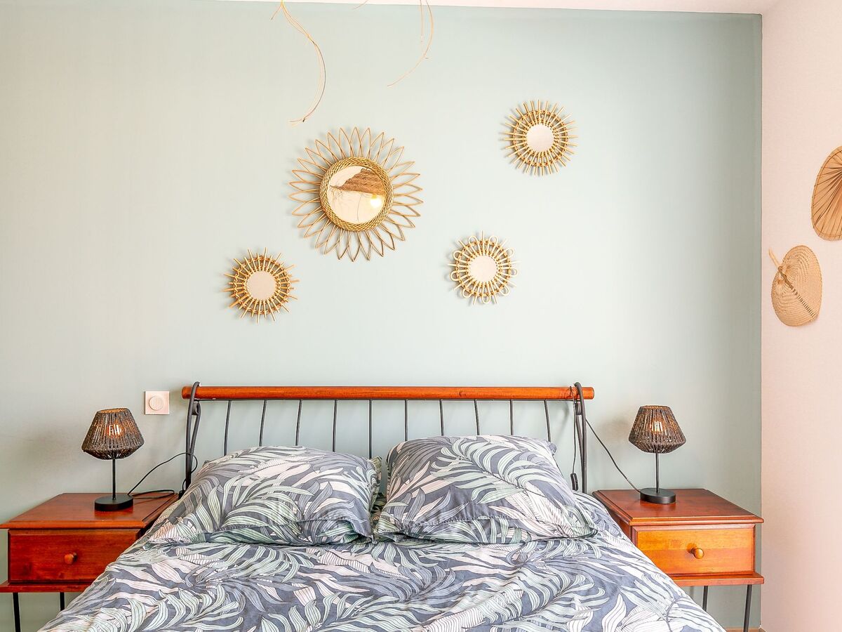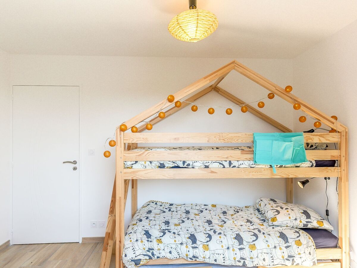 1 chambre avec 1 grand-lit (140 cm, longueur 190 cm), volet roulant électrique.