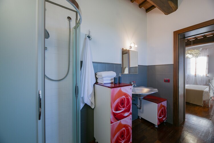 Le premier étage, accessible par des escaliers intérieurs et extérieurs, comprend deux chambres doubles avec salle de bain privative, ainsi qu'une chambre double et une chambre triple partageant une salle de bain complète avec douche. La Torre Colombaia propose une chambre double romantique avec salle de bain privative, tandis qu'une chambre triple avec salle de bain se trouve dans une charmante annexe en pierre. Le vaste jardin comprend un espace barbecue avec un four et des grills, un kiosque pour les repas en plein air et une piscine avec solarium et chaises longues accessibles par un bel escalier ou une rampe herbeuse.