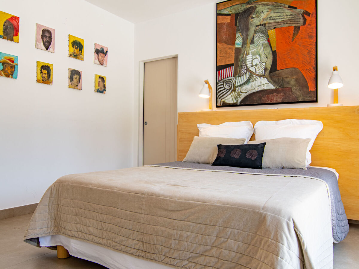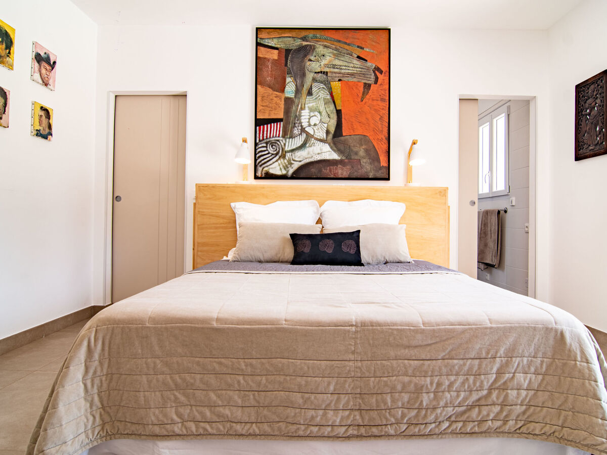 1 chambre avec 1 grand-lit (160 cm, longueur 190 cm).