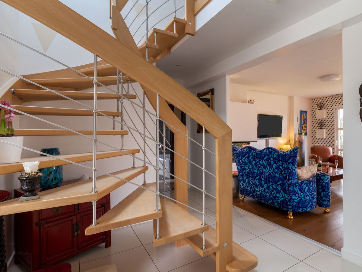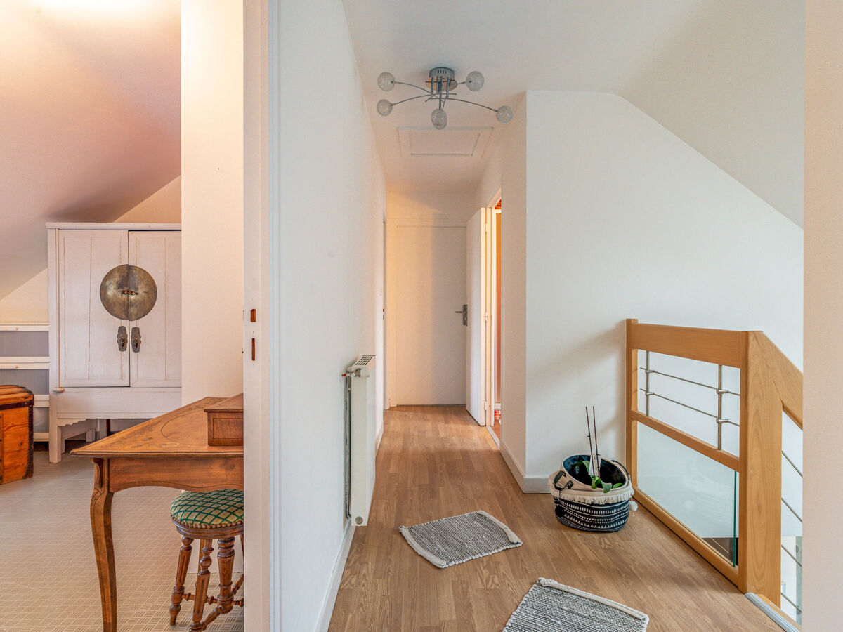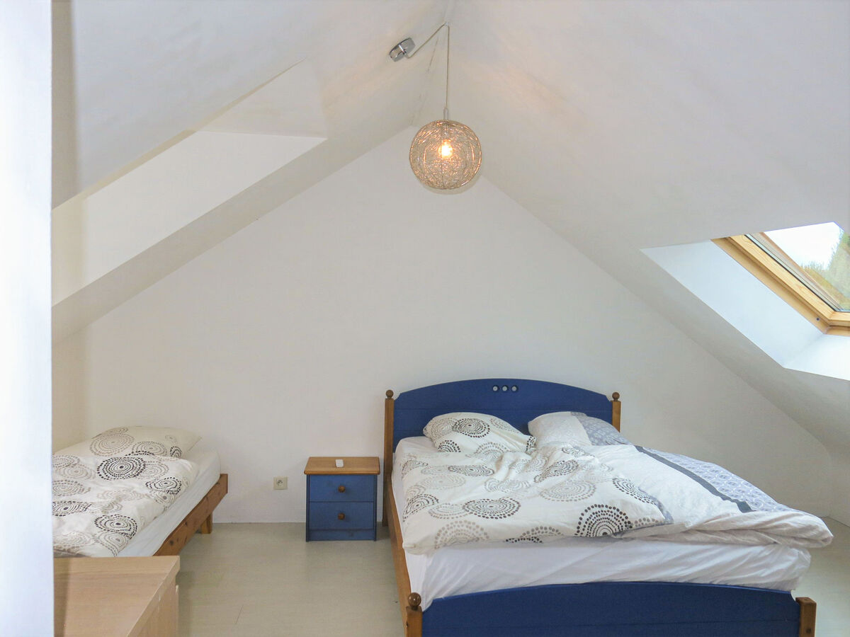 À l'étage supérieur: 1 chambre, mansardée avec 1 lit (90 cm, longueur 190 cm), 1 grand-lit (140 cm, longueur 190 cm).