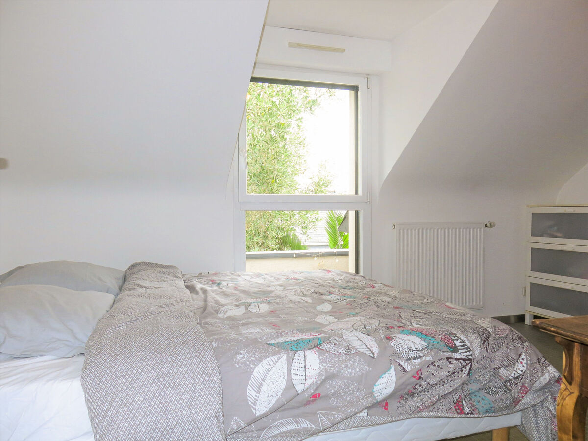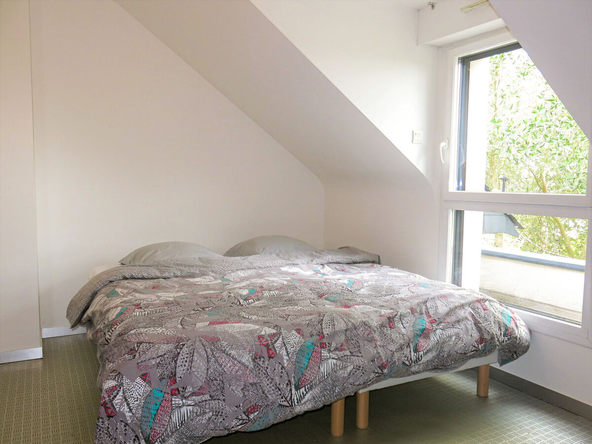 1 chambre, mansardée avec 1 grand-lit (140 cm, longueur 190 cm).