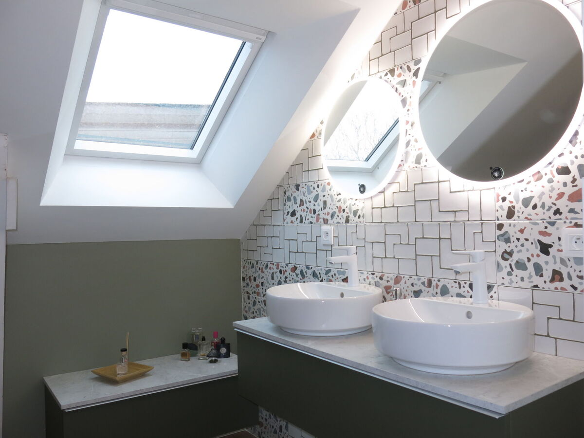 Bain/douche, WC séparé, double vasque.