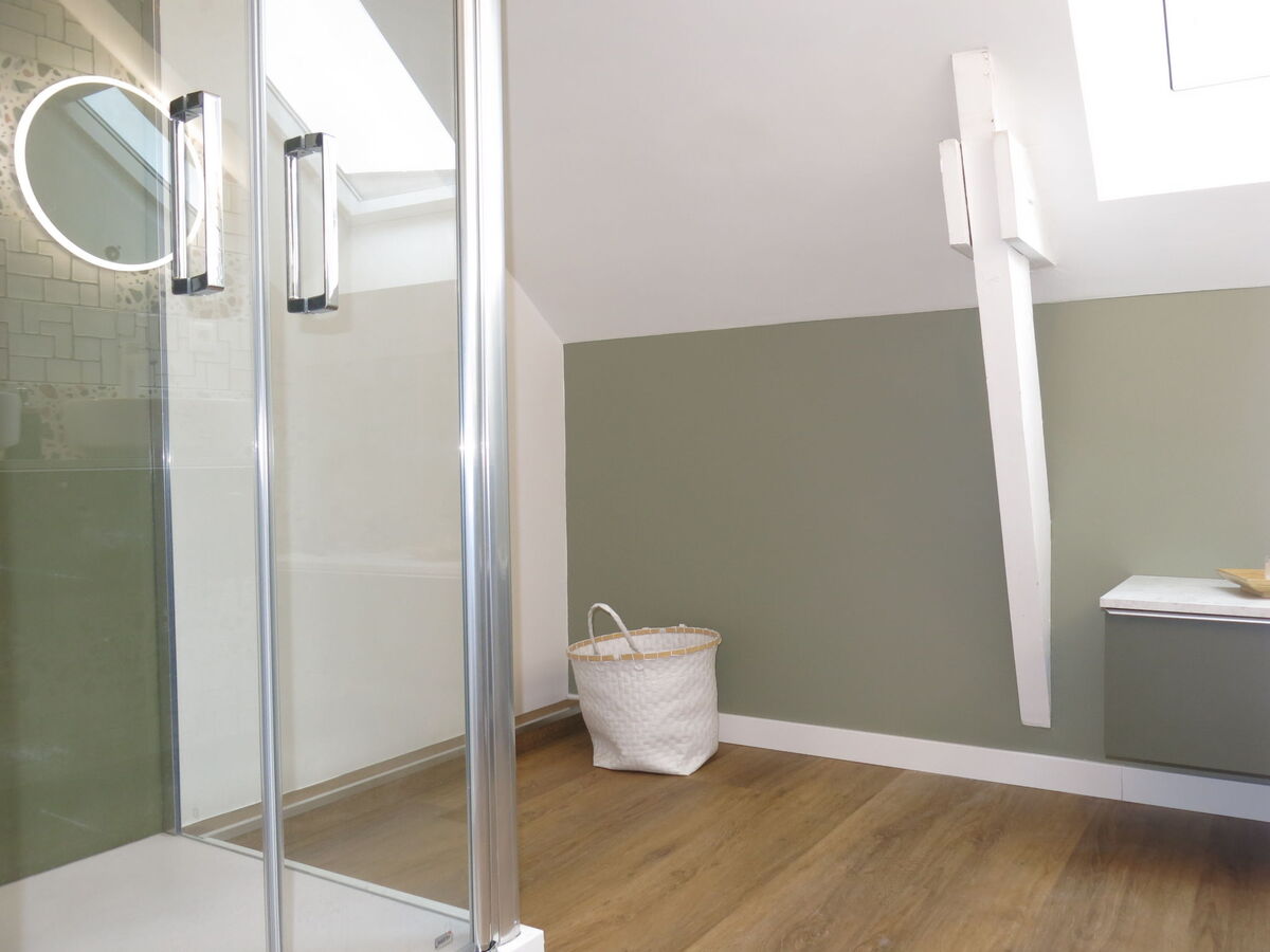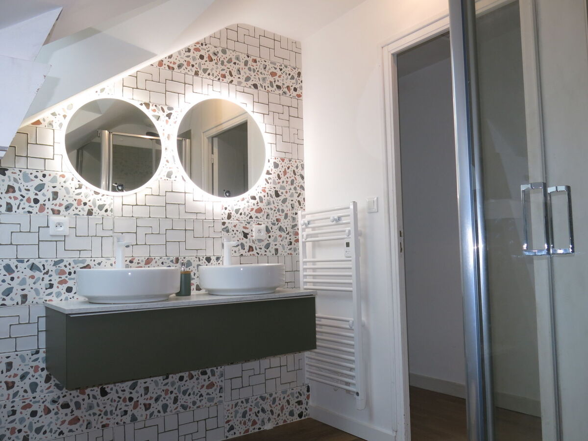Douche, WC séparé, double vasque.