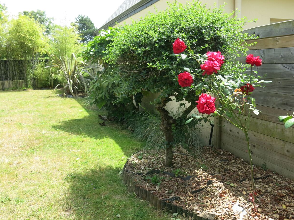 A usage privé: terrain 800 m2 (clôturé) avec pelouse et plantes, jardin propice à la détente, piscine chauffée (2 x 5 m, profondeur 130 - 130 cm, disponibilité saisonnière: 26.Avr.