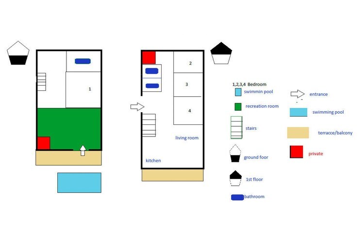 Rez-de-chaussée: (chambre(lit simple, Lit double petite taille), salle de bains(douche, WC), salle de jeux) Au 1er étage: (cuisine ouverte(foyer(4 foyers, électrique), bouilloire, cafetière/percolateur, four, lave-vaisselle , combinaison réfrigérateur/congélateur), salle à manger-salon(canapé-lit double, TV(satellite, chaînes de télévision allemandes), table), chambre(lit double), chambre(lit double), chambre(lit double), salle de bains(douche, WC), salle de bains(baignoire, WC)) Accès Internet, lave-linge , balcon ou terrasse, climatisation, terrasse(privé), jardin(privé, clôturé), mobilier de jardin, barbecue, parking, private outdoor pool, équipements de jeux, tennis de table/ping-pong