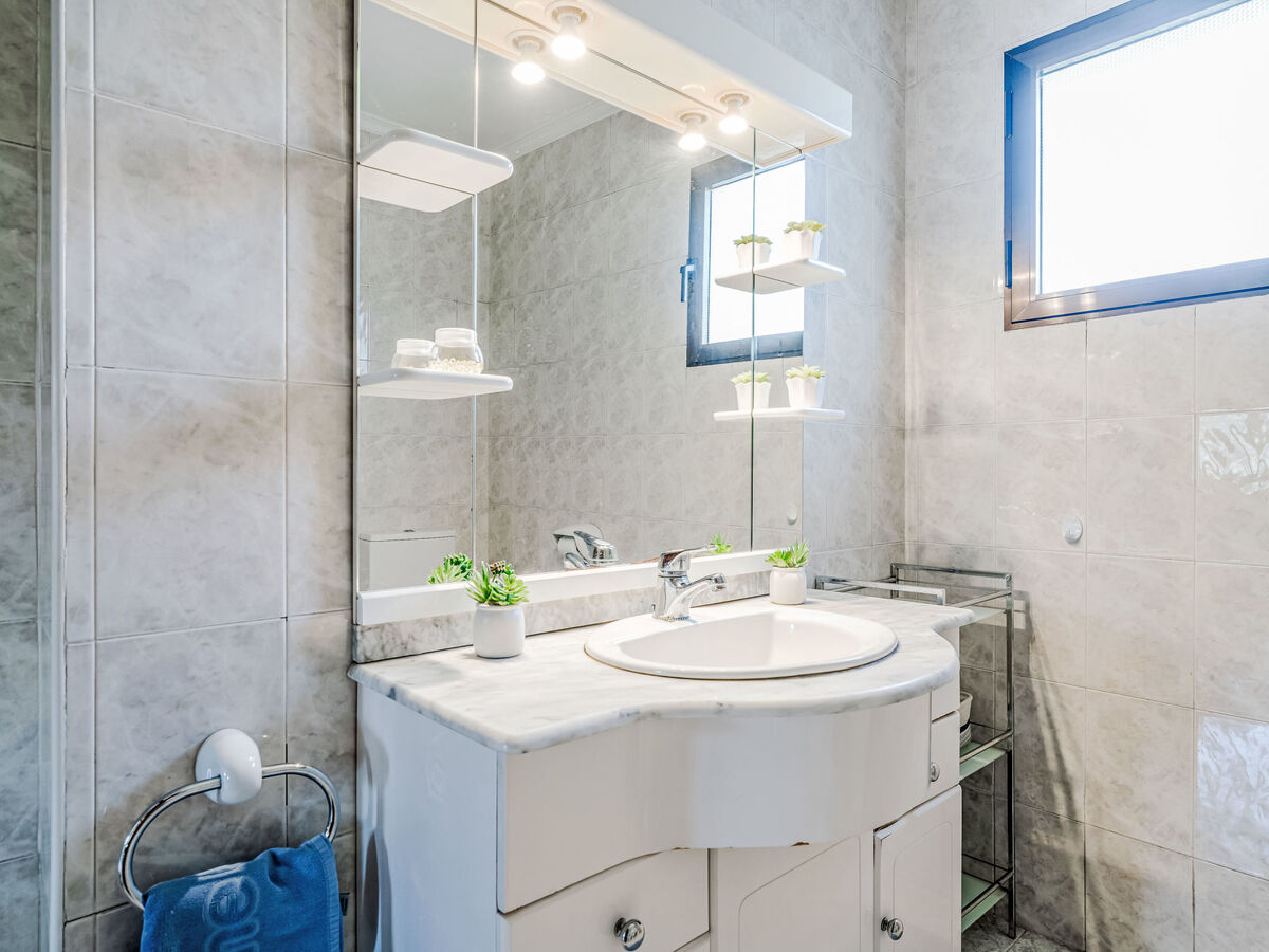 Douche extérieure, meubles de jardin, place de parking sur le terrain.