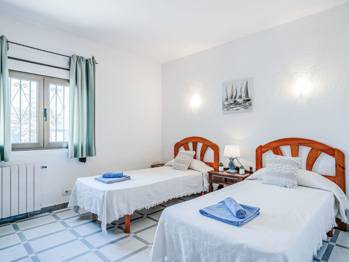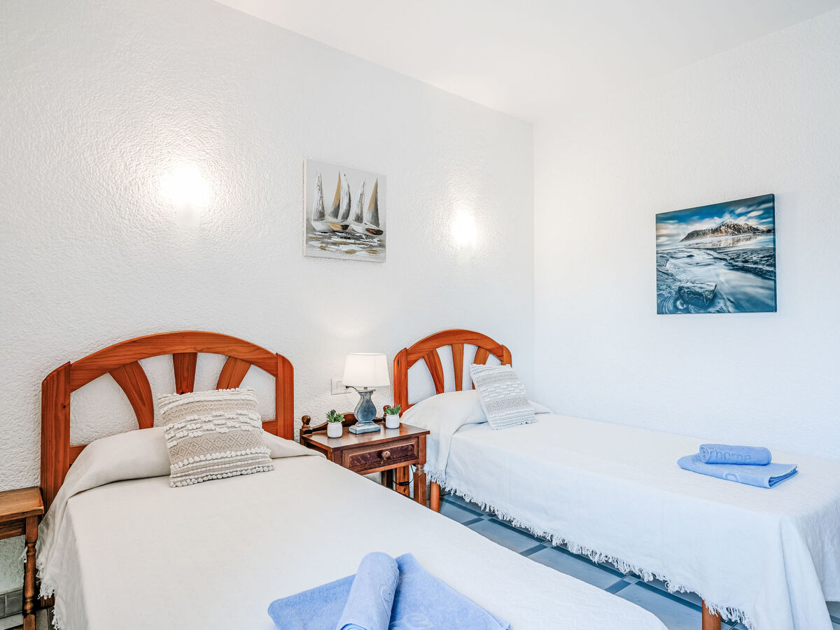 1 chambre avec 2 lits (90 cm, longueur 190 cm), ventilateur.