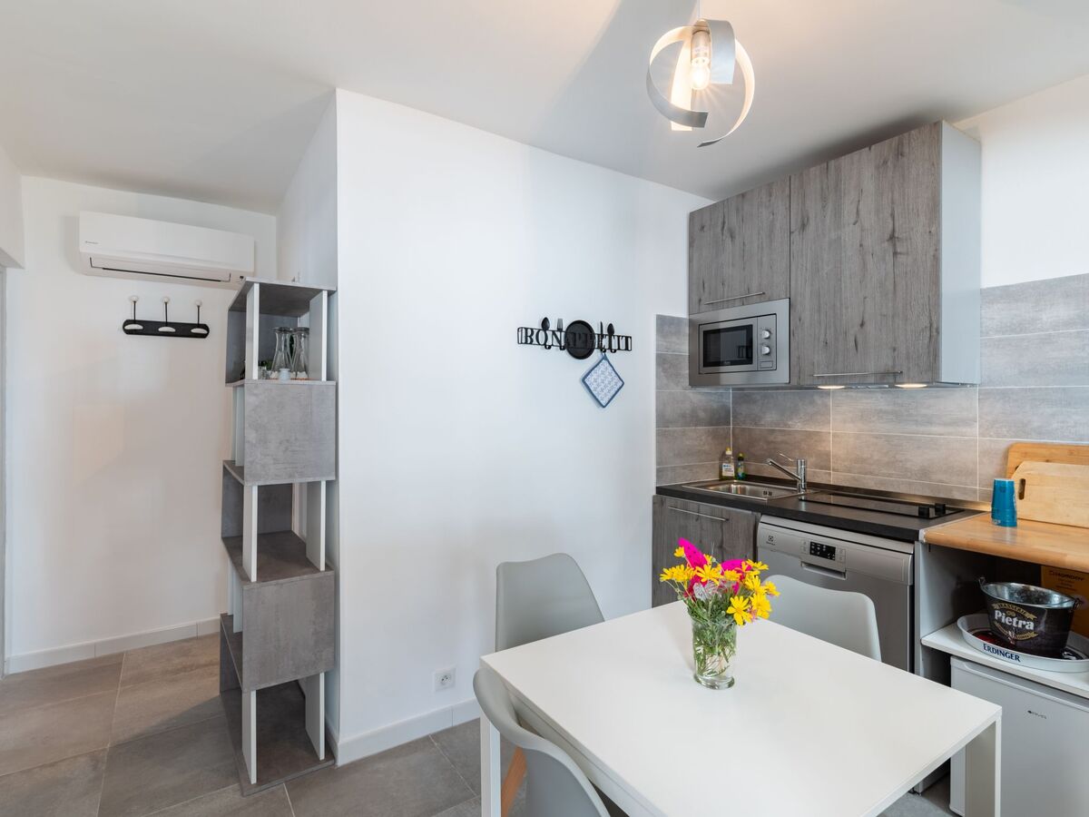 Cuisine ouverte (2 plaques de cuisson, lave-vaisselle, grille-pain, micro-ondes, cafetière électrique, Capsules pour machine à café (Nespresso) (NON INCLUSES)) avec air-conditionné.