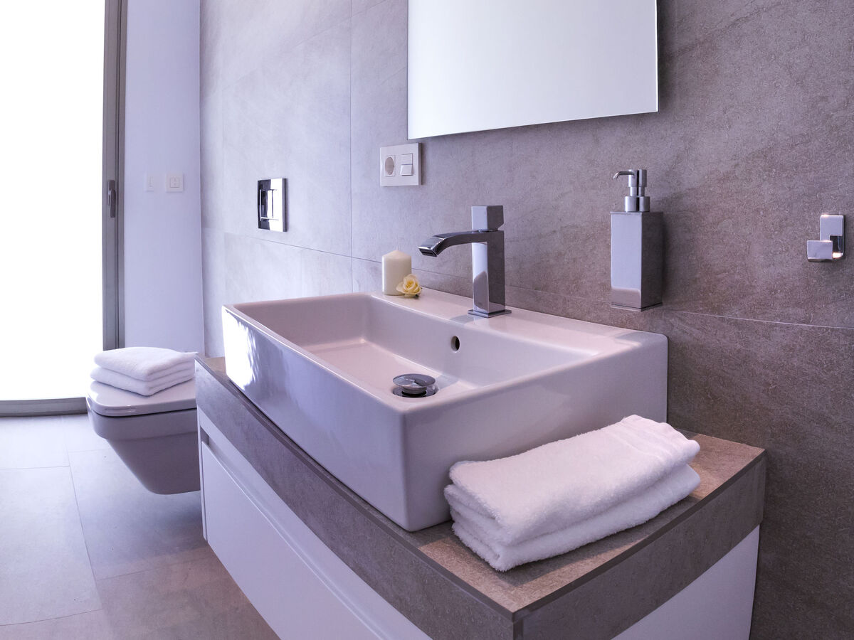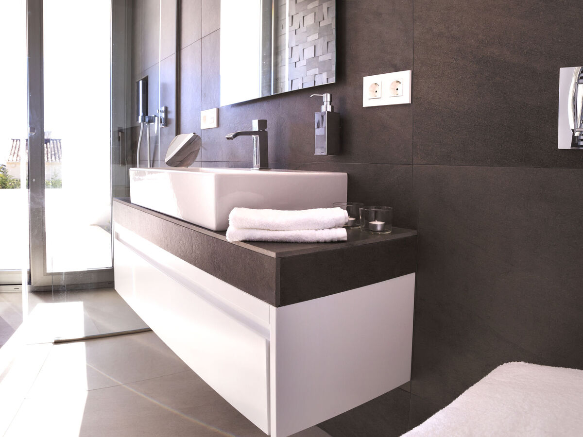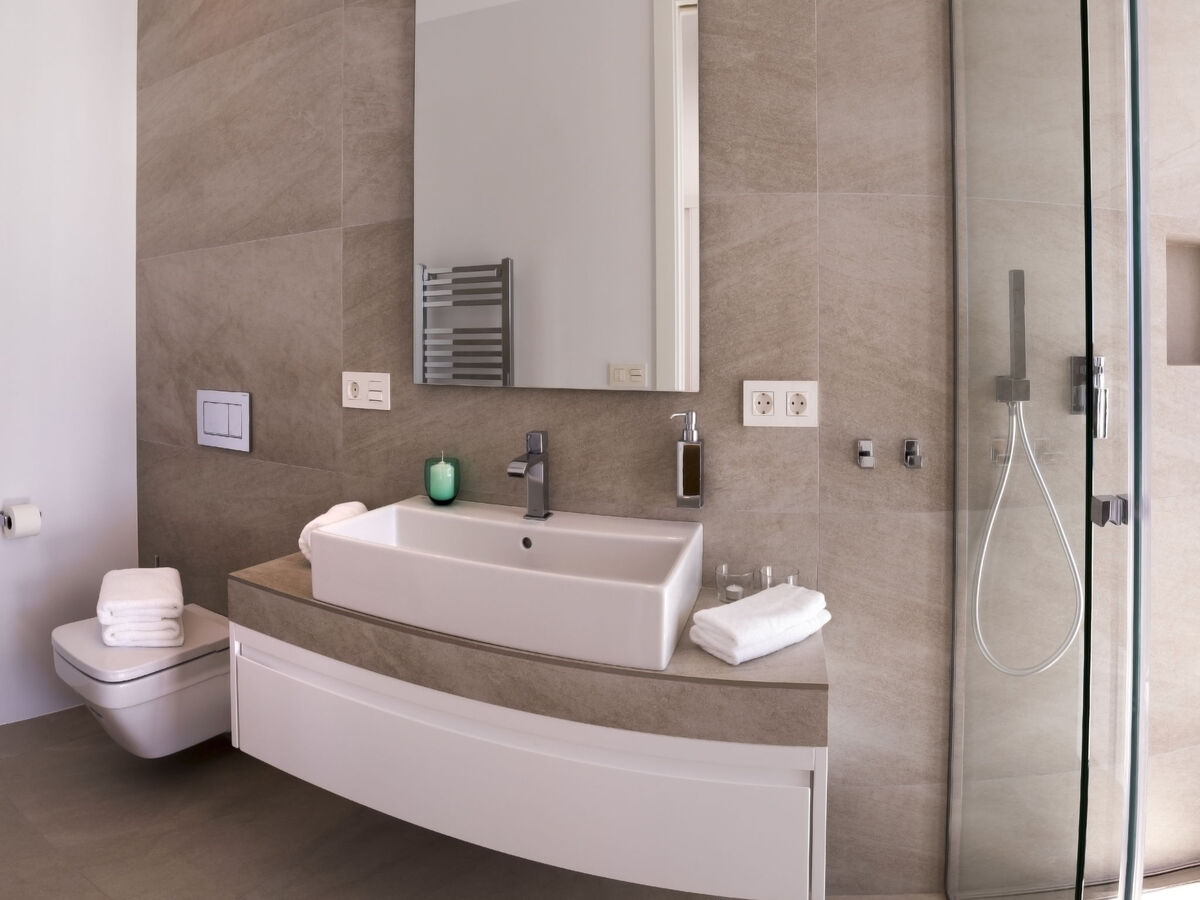 1 chambre avec 1 grand-lit (200 cm, longueur 200 cm), salle de bains, douche/WC, double vasque, air-conditionné et chauffage à air chaud.