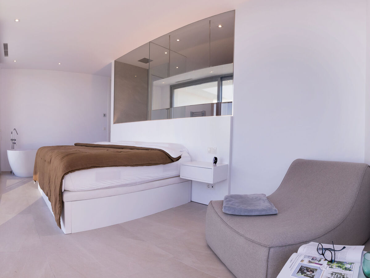 À l'étage inférieur: 1 chambre avec 1 grand-lit (200 cm, longueur 200 cm), douche/WC, TV (satellite), air-conditionné et chauffage à air chaud.
