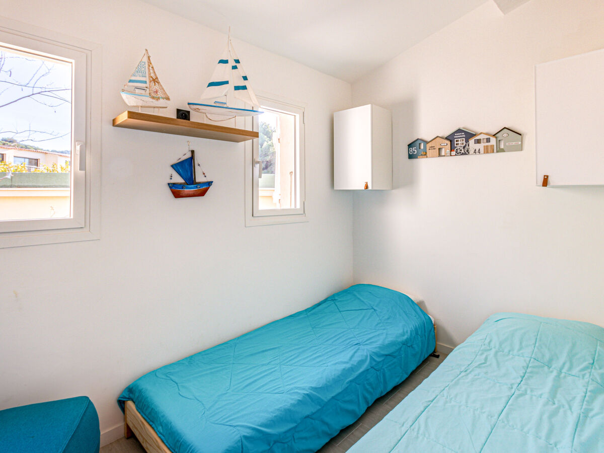 1 petite chambre avec 1 lit gigogne (2 x 80 cm, longueur 190 cm), air-conditionné.