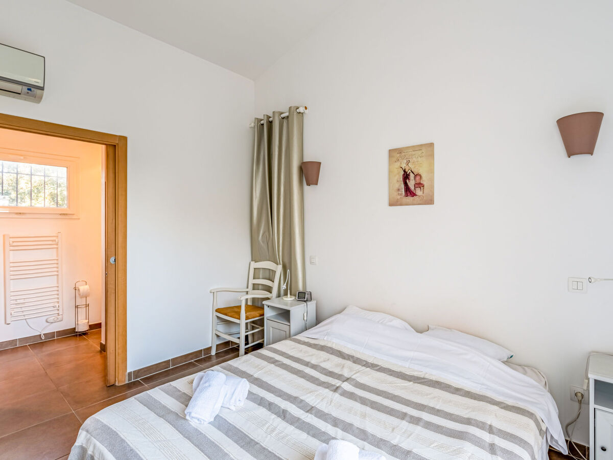 1 chambre avec 1 grand-lit (160 cm, longueur 190 cm), douche/WC et TV (écran plat), air-conditionné.