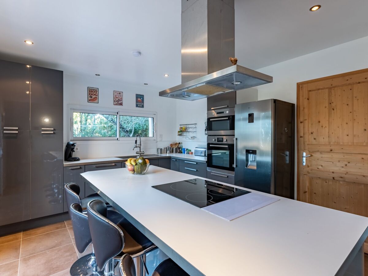 Cuisine ouverte (four, lave-vaisselle, 4 plaques à induction, bouilloire électrique, micro-ondes, congélateur, cafetière électrique).