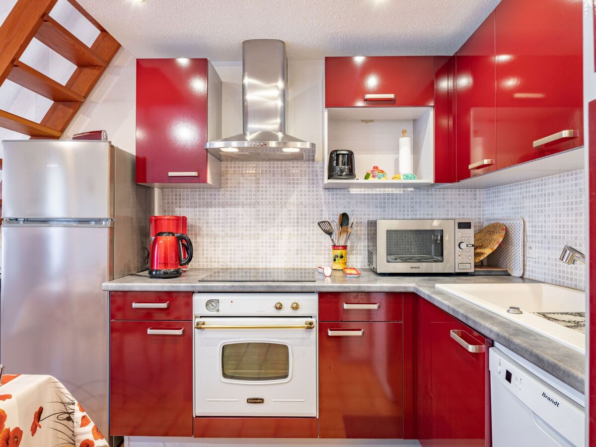 Coin cuisine (four, lave-vaisselle, 3 plaques à induction, congélateur, cafetière électrique, combiné micro-ondes).