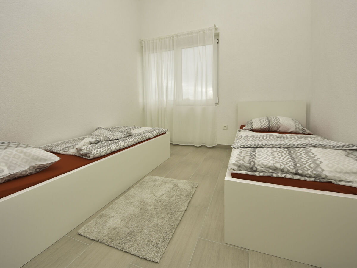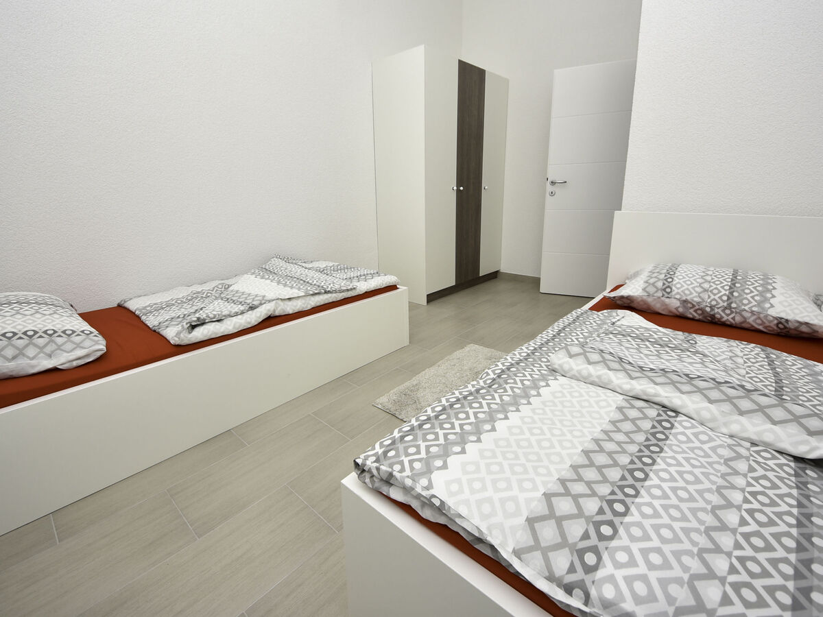 1 chambre, mansardée hauteur plafond 100 - 300 cm avec 2 lits (90 cm, longueur 200 cm), air-conditionné.