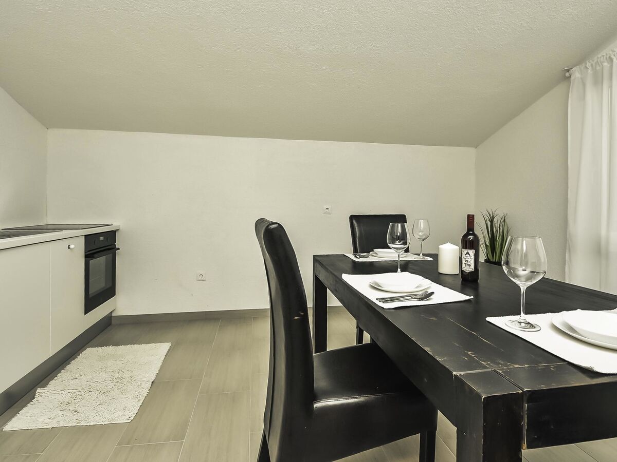 Salle à manger mansardée, hauteur plafond 100 - 300 cm avec coin-cuisine.