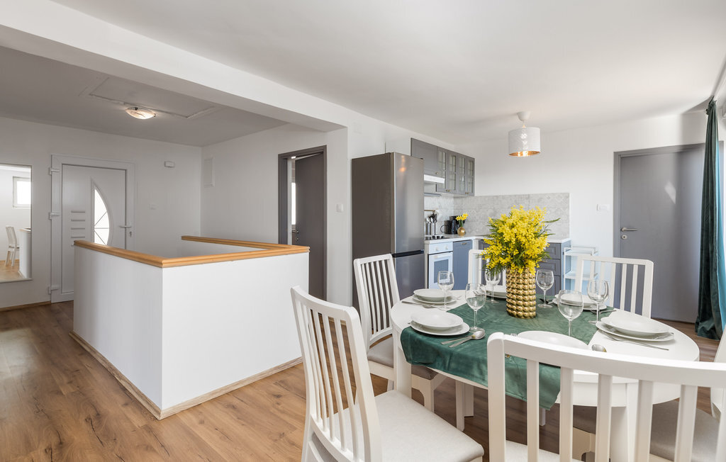 Cette maison spacieuse et lumineuse est parfaite pour deux familles ou trois couples qui souhaitent passer des vacances ensemble. Elle est idéale pour toutes les saisons, car elle est entièrement climatisée et dispose du chauffage au sol dans toutes les pièces. Vous pouvez vous réunir autour d'un café et d'un petit déjeuner le matin ou passer de douces soirées d'été sur l'une des terrasses. Pour vous rafraîchir pendant les chaudes journées d'été, vous trouverez une belle piscine et un jacuzzi devant la maison, ainsi qu'un barbecue sur une terrasse couverte pour préparer vos spécialités préférées.
