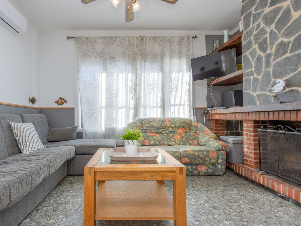 Aménagement fonctionnel et confortable: séjour/salle à manger avec cheminée, table pour les repas, TV (satellite), écran plat, air-conditionné, ventilateur et chauffage à air chaud.