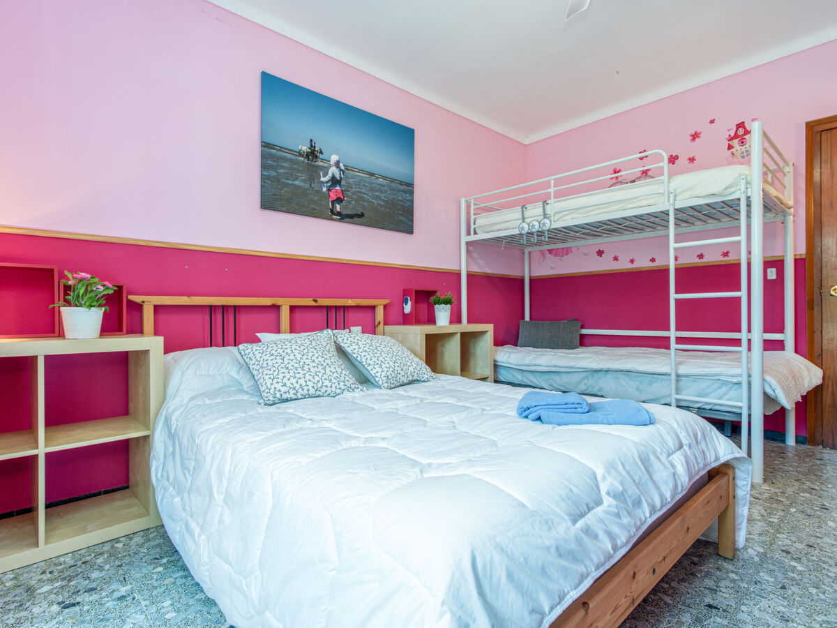 1 chambre avec 2 lits (90 cm, longueur 200 cm), 1 x 1 lits superposés (90 cm, longueur 190 cm), 1 lit double (140 cm, longueur 190 cm), lavabo.