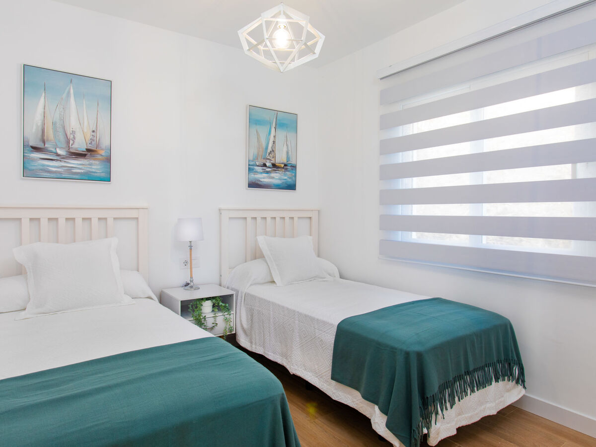 1 chambre avec 2 lits (90 cm, longueur 190 cm), air-conditionné et chauffage à air chaud.