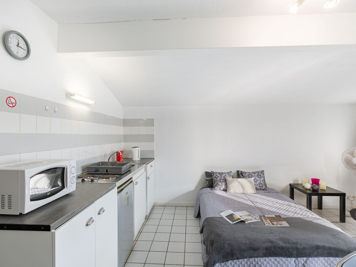Coin cuisine (2 plaques de cuisson, grille-pain, bouilloire électrique, micro-ondes, cafetière électrique).