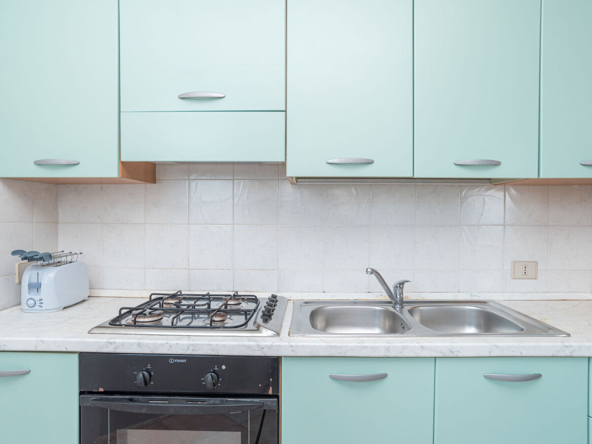 Coin cuisine (four, 4 plaques à induction, grille-pain, congélateur, cafetière électrique).