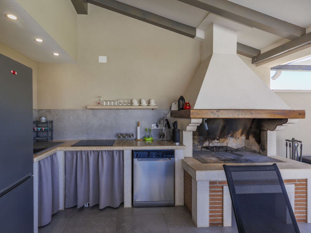 Cuisine ouverte (four, lave-vaisselle, 4 plaques vitrocéramiques, bouilloire électrique, congélateur, cafetière électrique).