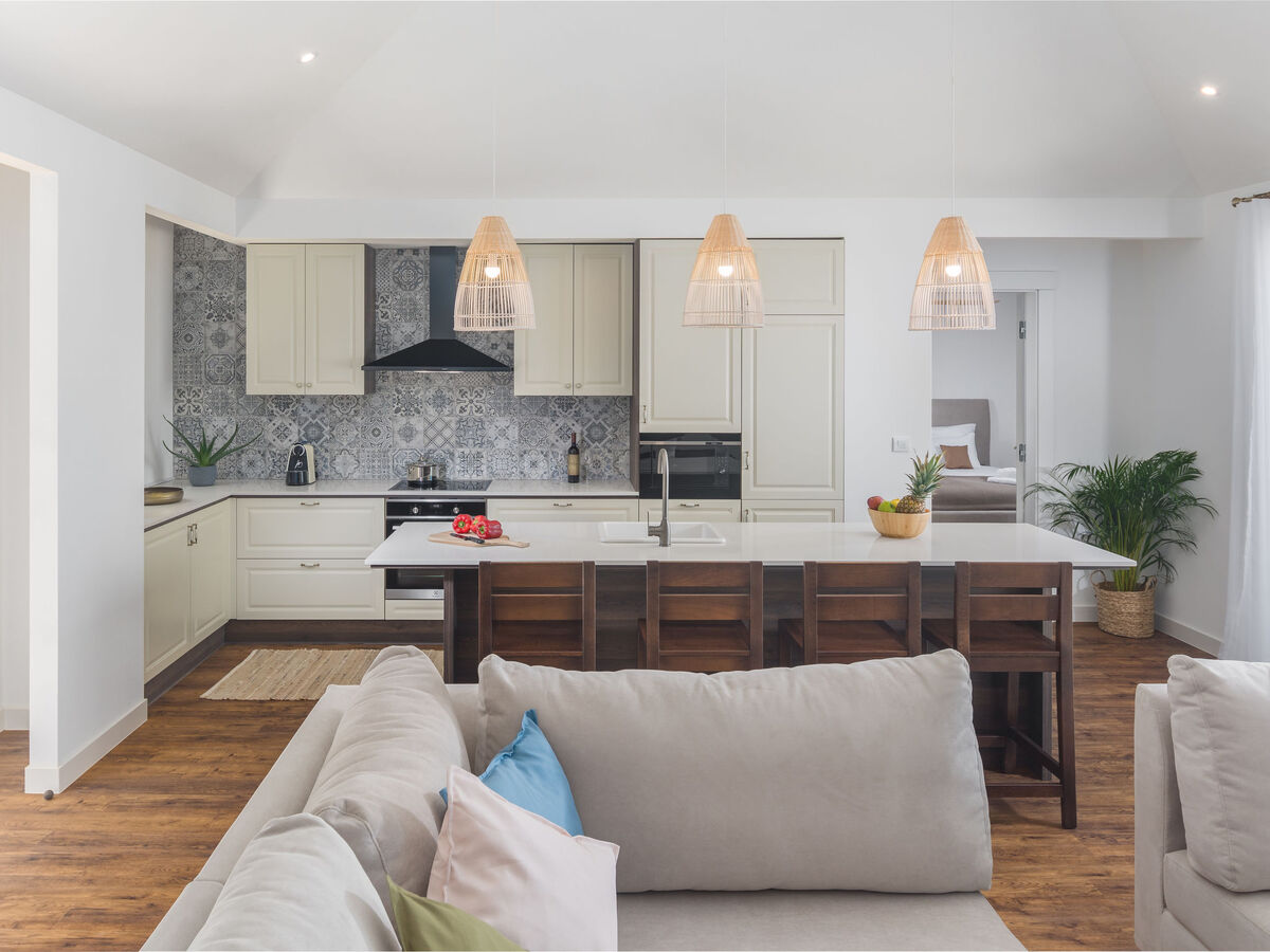 Cuisine ouverte (4 plaques de cuisson, four, lave-vaisselle, grille-pain, bouilloire électrique, micro-ondes, cafetière électrique).