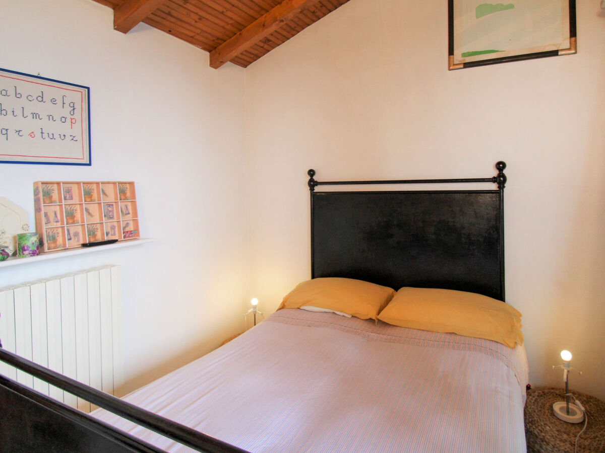À l'étage supérieur: 1 chambre, mansardée avec 1 lit double (140 cm).