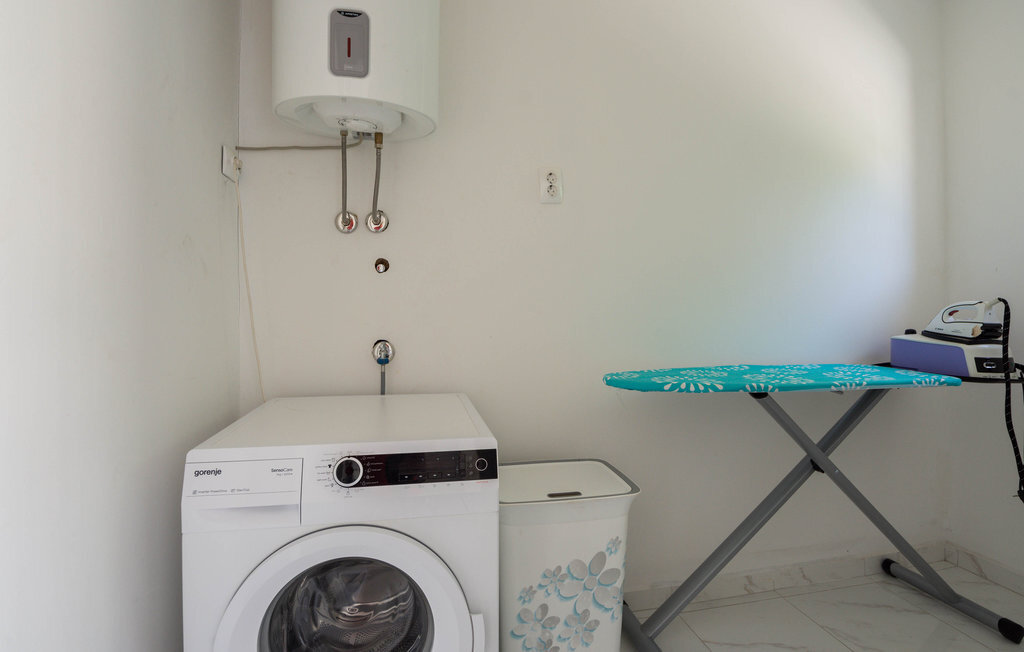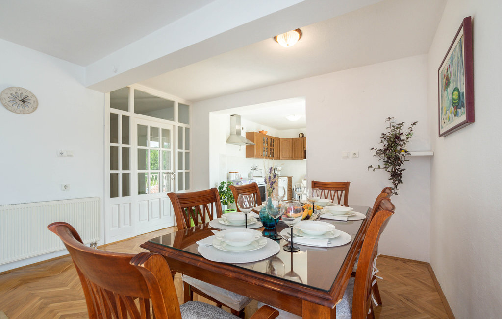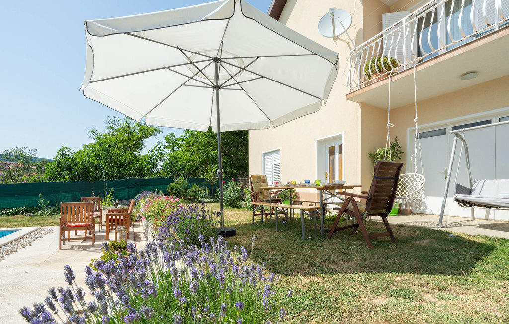 Ce domicile vous offre un intérieur confortable, équipé de tout ce dont vous avez besoin pour vos vacances en Croatie. À l'extérieur, vous avez accès à un balcon où vous pouvez capter les premiers rayons de soleil, ainsi qu'à une terrasse avec chaises longues et piscine pour vous détendre.