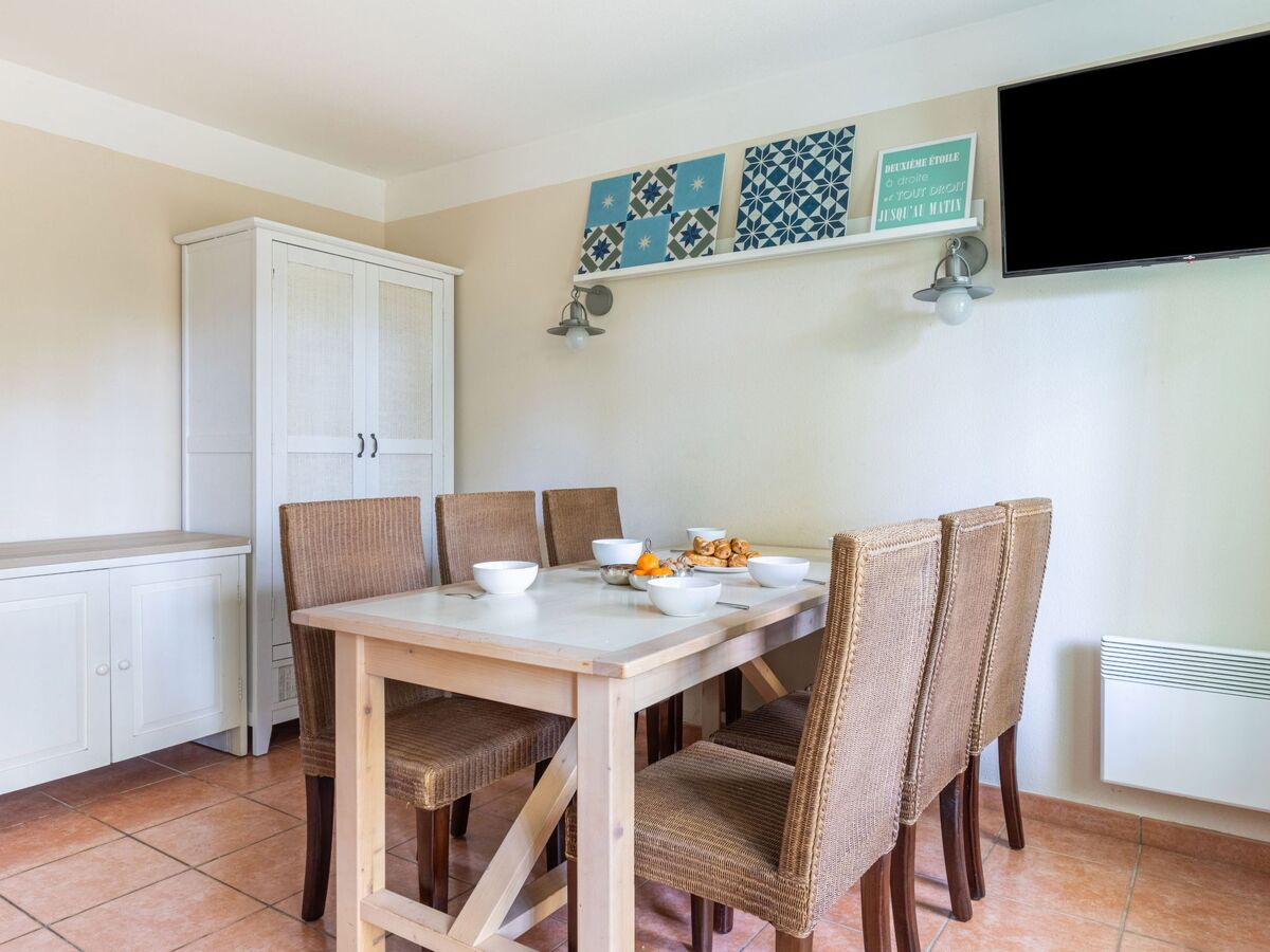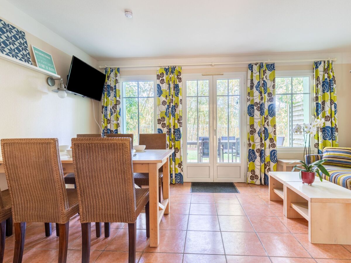 Aménagement confortable: séjour/salle à manger avec 1 divan-lit (90 cm, longueur 190 cm), table pour les repas et TV (écran plat).