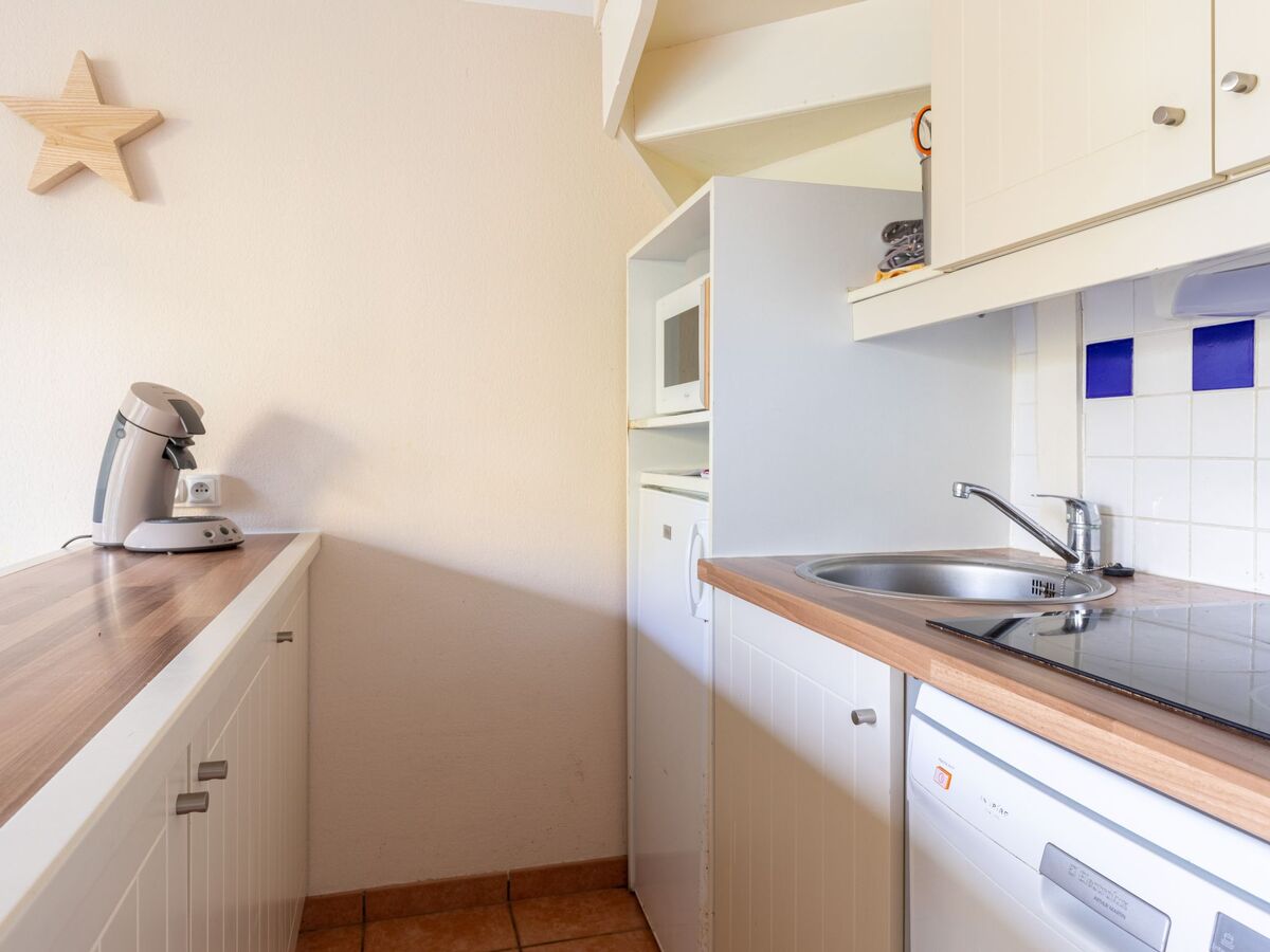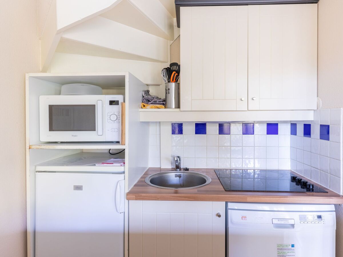 Cuisine ouverte (lave-vaisselle, 4 plaques vitrocéramiques, grille-pain, bouilloire électrique, micro-ondes, cafetière électrique).