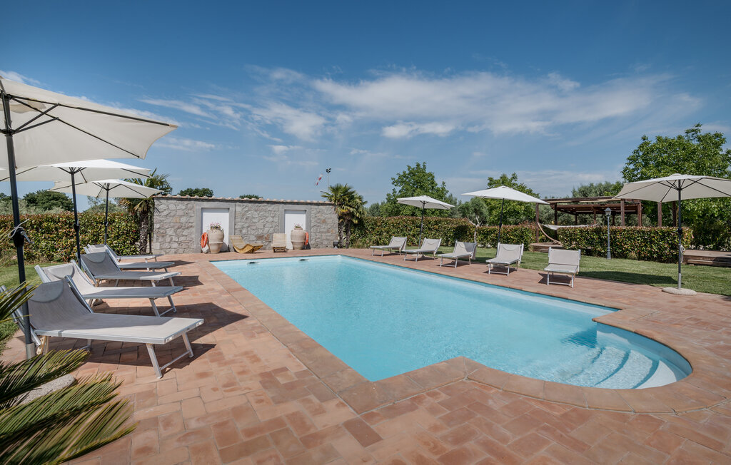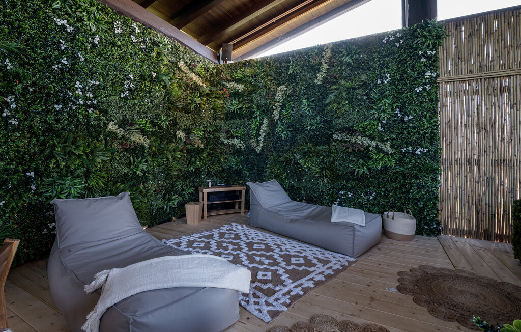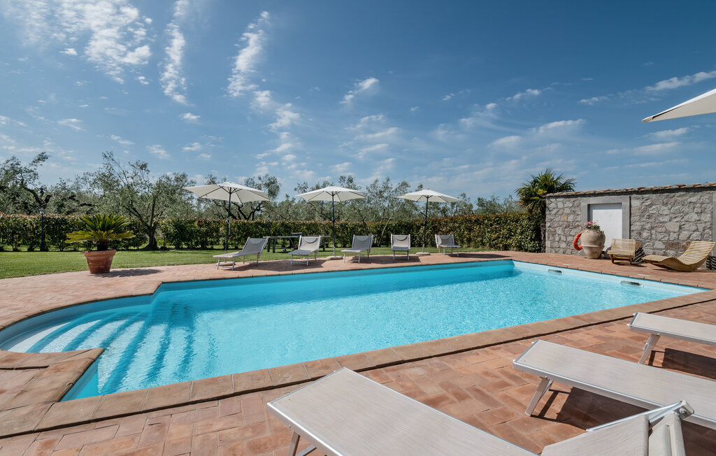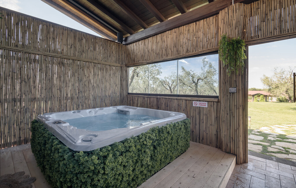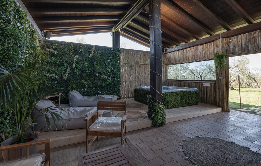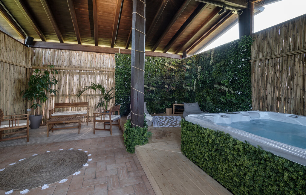 Bien-être à l'extérieur : Location de vacances disposant de chaises-longues et d'un ou plusieurs équipements tels que piscine extérieure, jacuzzi extérieur, lit à baldaquin de jardin etc...