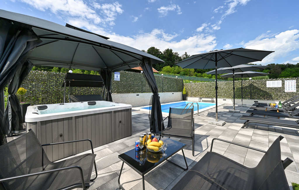 Bien-être à l'extérieur : Location de vacances disposant de chaises-longues et d'un ou plusieurs équipements tels que piscine extérieure, jacuzzi extérieur, lit à baldaquin de jardin etc...