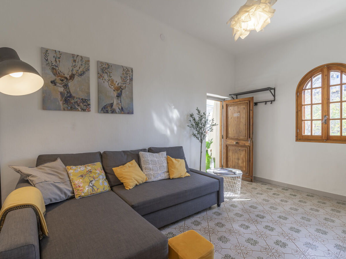 Aménagement de bon goût et plaisant: séjour/salle à manger avec 1 divan-lit (160 cm, longueur 200 cm).
