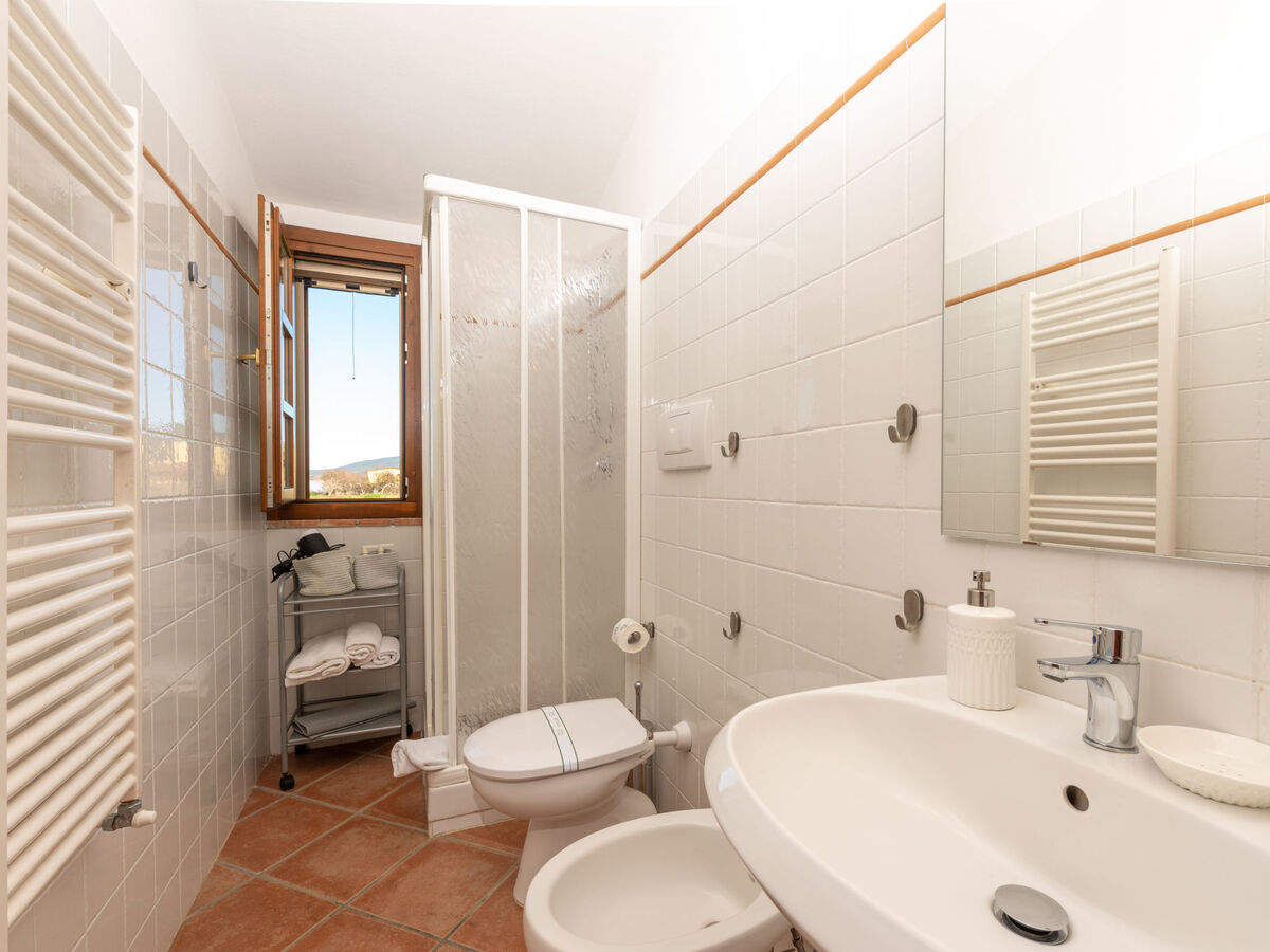 À 2.5 km du centre de Pian d´Alma, à 8 km du centre de Punta Ala, à 13 km du centre de Castiglione della Pescaia, situation tranquille, ensoleillée, à 2.5 km de la mer, dans la verdure.