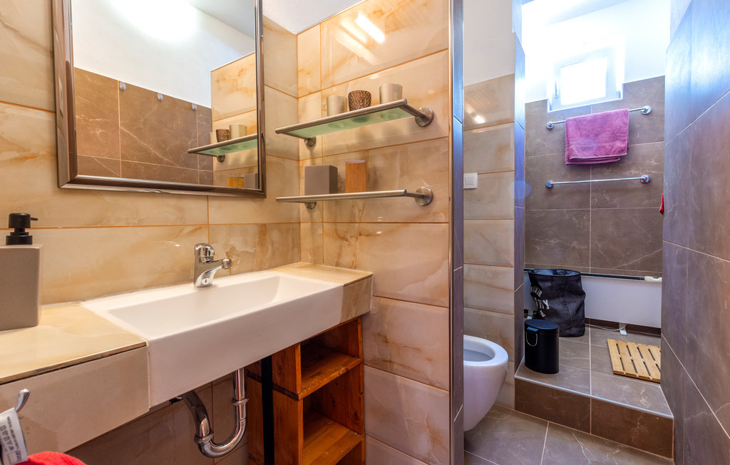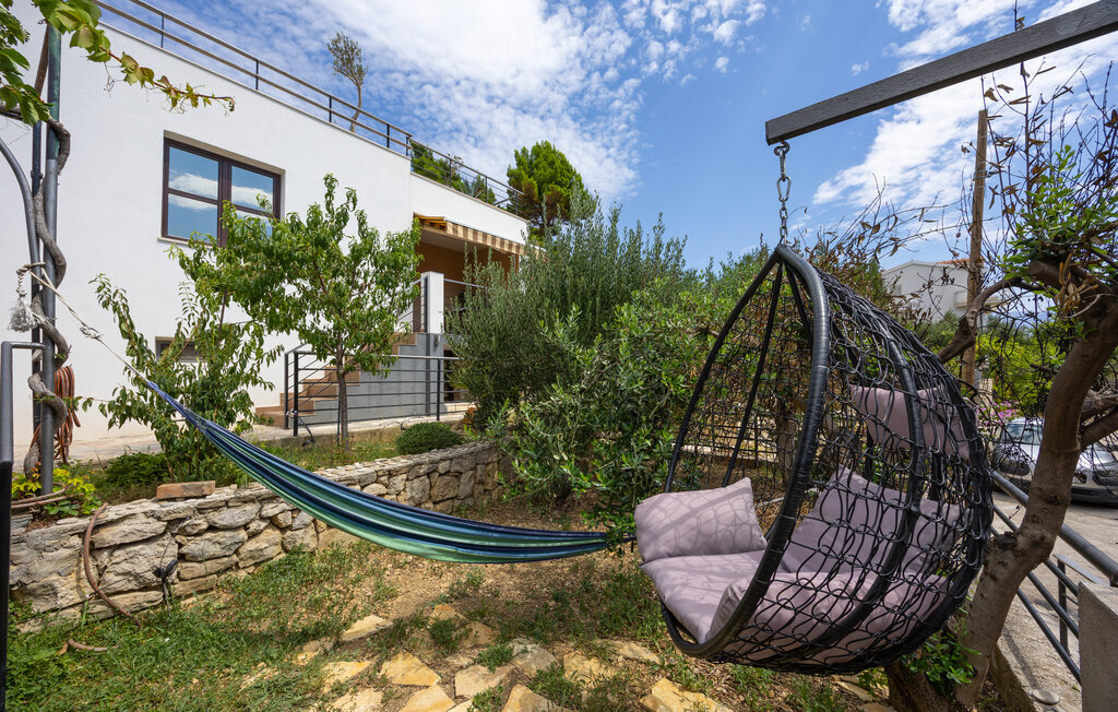 La plage n'est qu'à quelques mètres de la maison. Vous y accédez par un petit chemin escarpé avec des escaliers. Ici, vous pouvez profiter de l'eau incroyablement claire à tout moment de la journée. La ville animée et remarquable de Split est à moins d'une heure de route. Ici, vous pouvez faire du shopping à outrance ou faire une excursion sur l'île de Brac. Un service de location de bateaux est également disponible et si vous avez besoin d'une journée de repos loin de la mer : Le parc naturel Dio Kanjona Rijeke Cetine, situé à proximité, vous propose une magnifique cascade et du rafting en guise d'excursion.