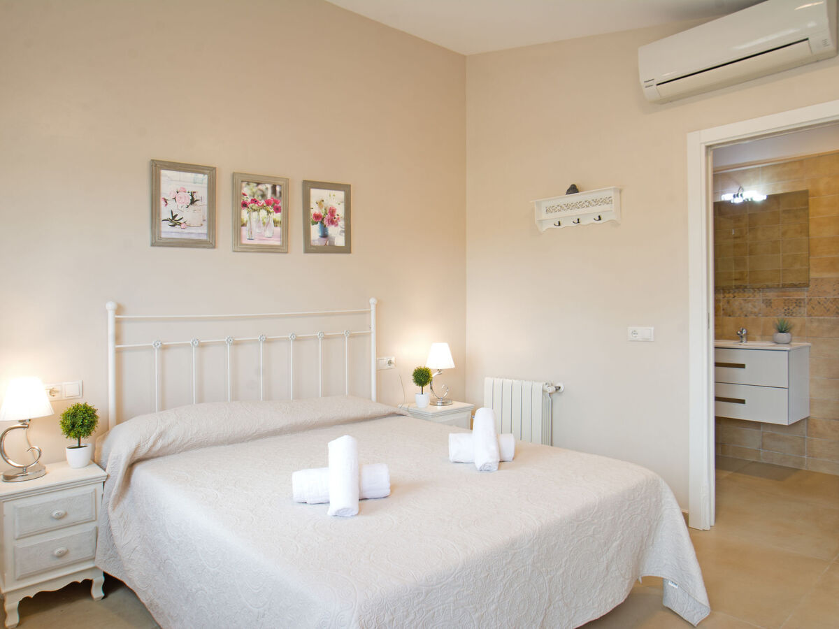 1 chambre avec 1 grand-lit (150 cm, longueur 190 cm), douche/bidet/WC, air-conditionné et chauffage à air chaud.