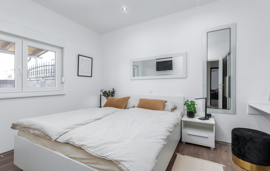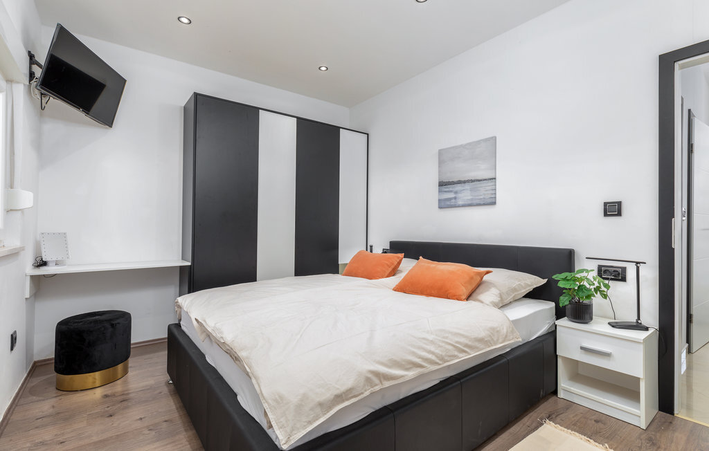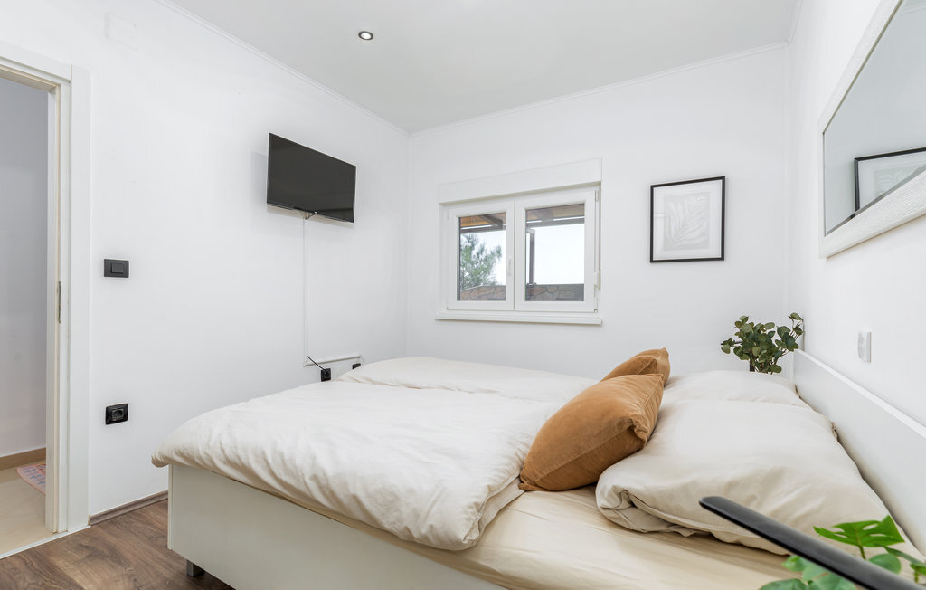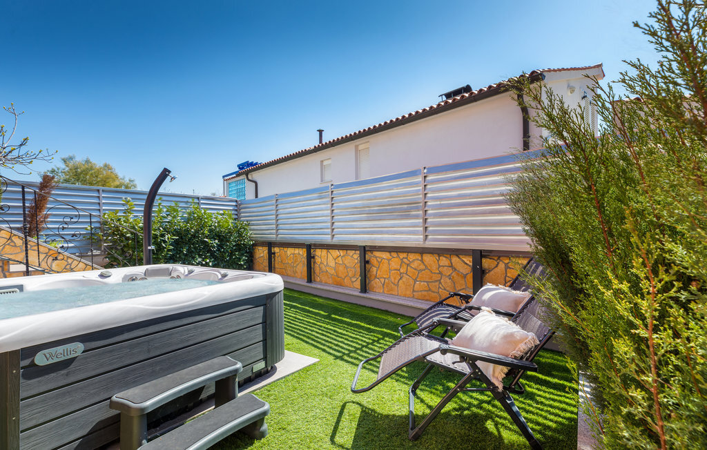 La maison se compose de deux unités séparées par un escalier extérieur. Réjouissez-vous d'une maison de vacances décorative et aménagée avec style en Croatie, qui vous offrira un espace incroyable. Elle est donc idéale pour deux familles ou un grand groupe d'amis qui souhaitent passer leurs vacances ensemble tout en ayant de l'intimité. Dans la cour, il y a une piscine et un jacuzzi où vous pourrez vous détendre et profiter du soleil. La terrasse au premier étage offre une vue pittoresque sur la mer.