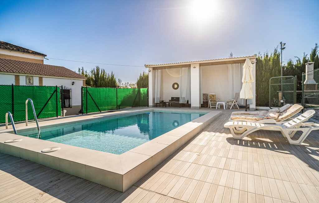 Bien-être à l'extérieur : Location de vacances disposant de chaises-longues et d'un ou plusieurs équipements tels que piscine extérieure, jacuzzi extérieur, lit à baldaquin de jardin etc...