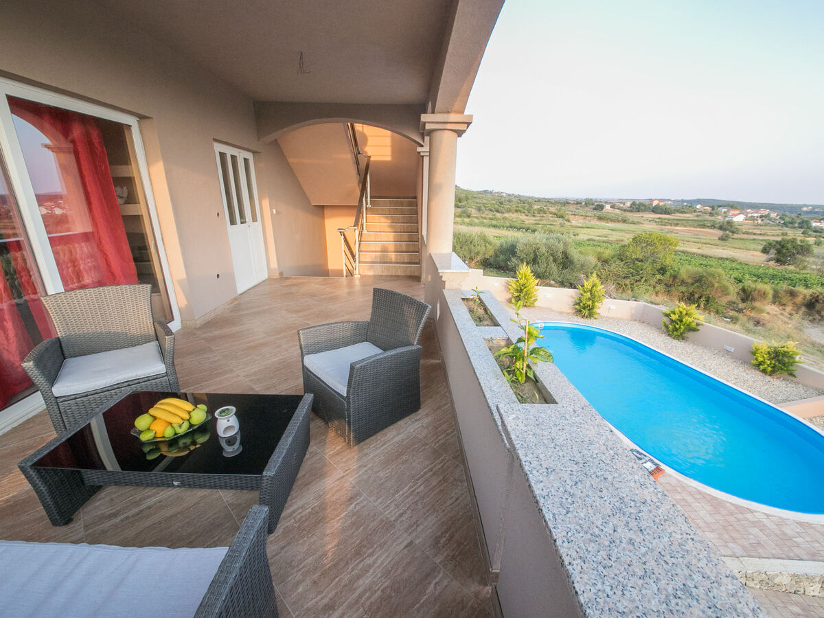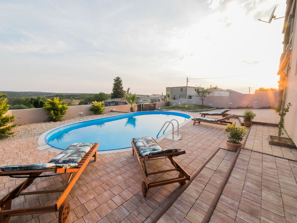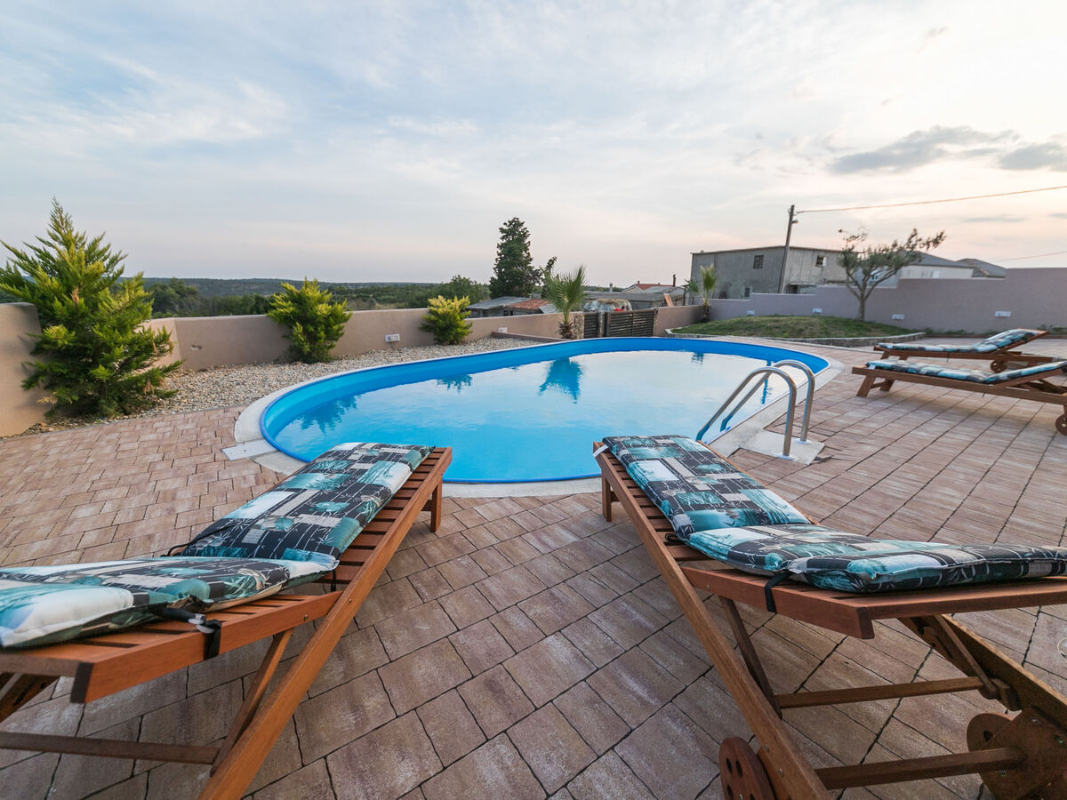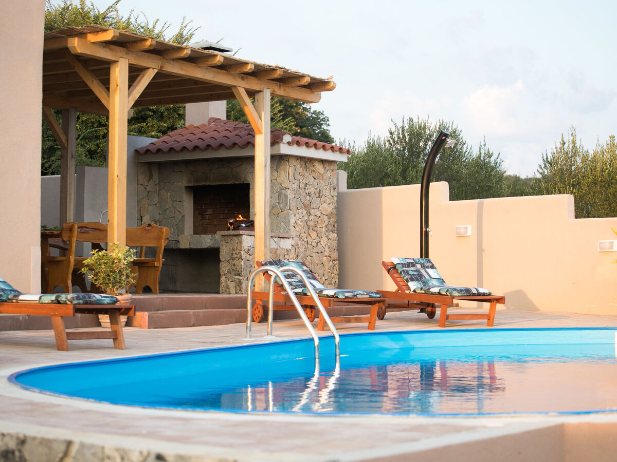 A usage privé: terrain 350 m2 (clôturé), piscine (8 x 4 m, profondeur 150 cm, disponibilité saisonnière: 01.Mai.